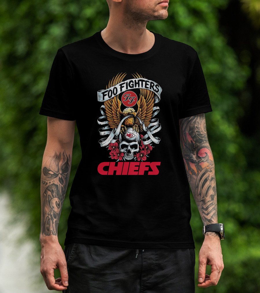 Foo Fighters Kansas City Chiefs Skull Eagle Wings Floral Banner T-Shirt
