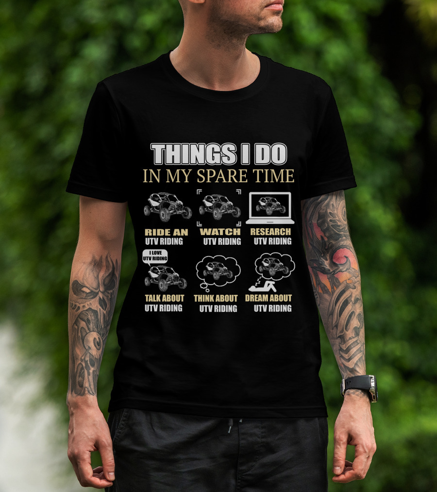 The Things I Do in My Spare Time Ride an Utv Maverick X3 Watch Research Talk About Think About Dream About Utv Riding T-shirt is designed for everyday wear and a consistent fit. Fabric is pre-shrunk ring-spun cotton with durable stitching. See the size chart below for exact measurements.