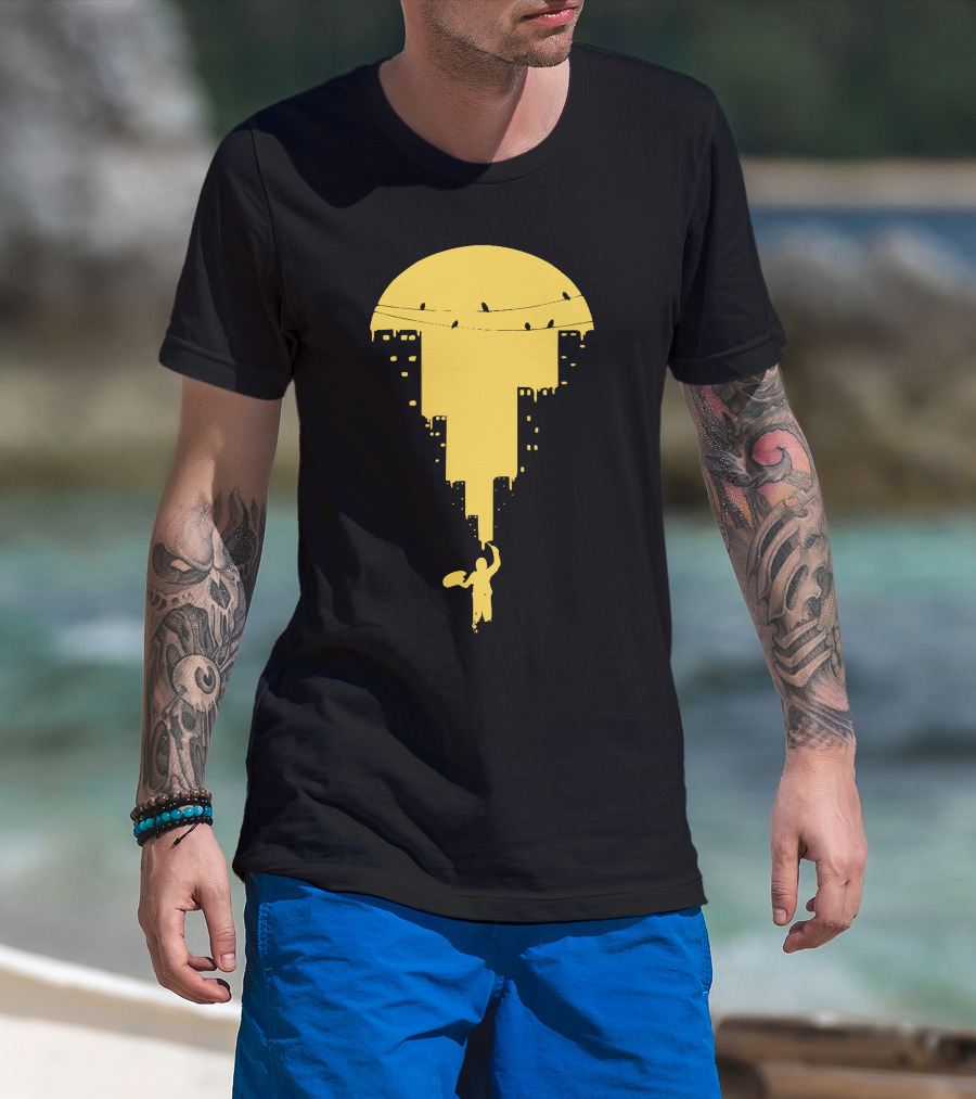 Paint It Orange Dripping Skyline With Birds T-Shirt