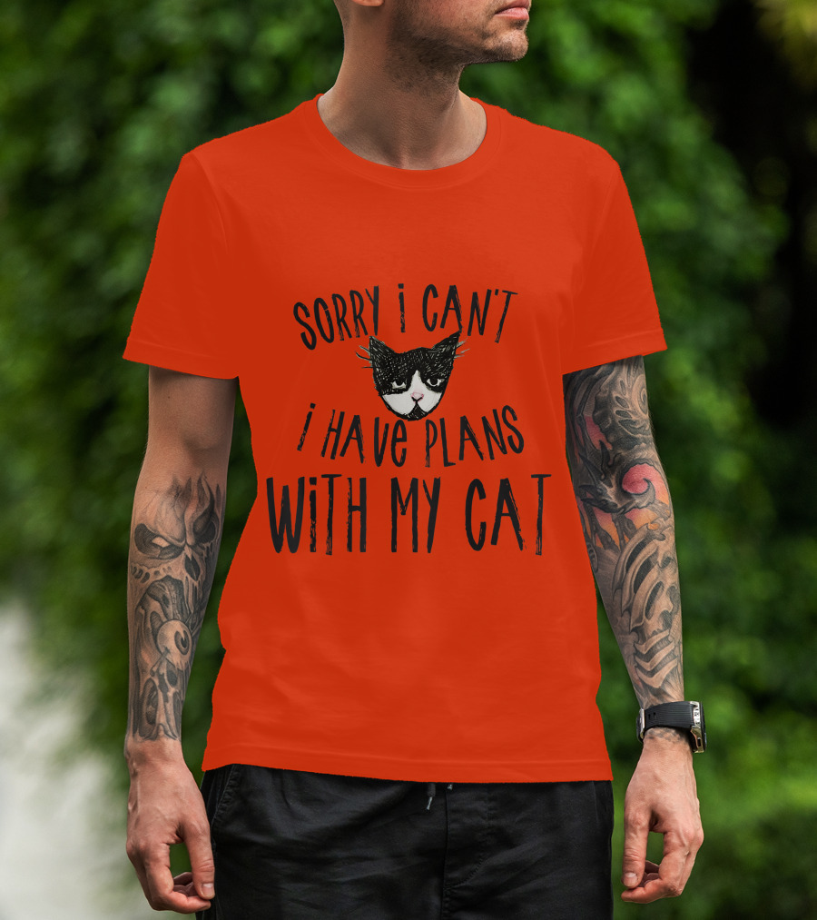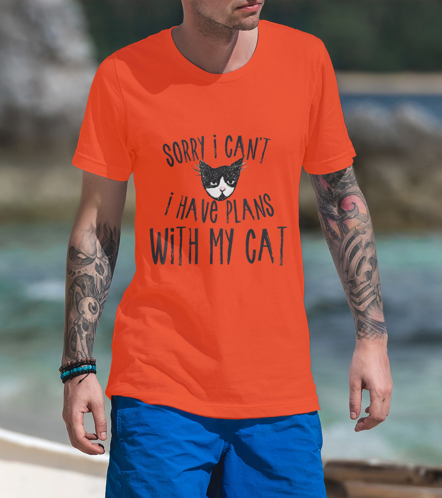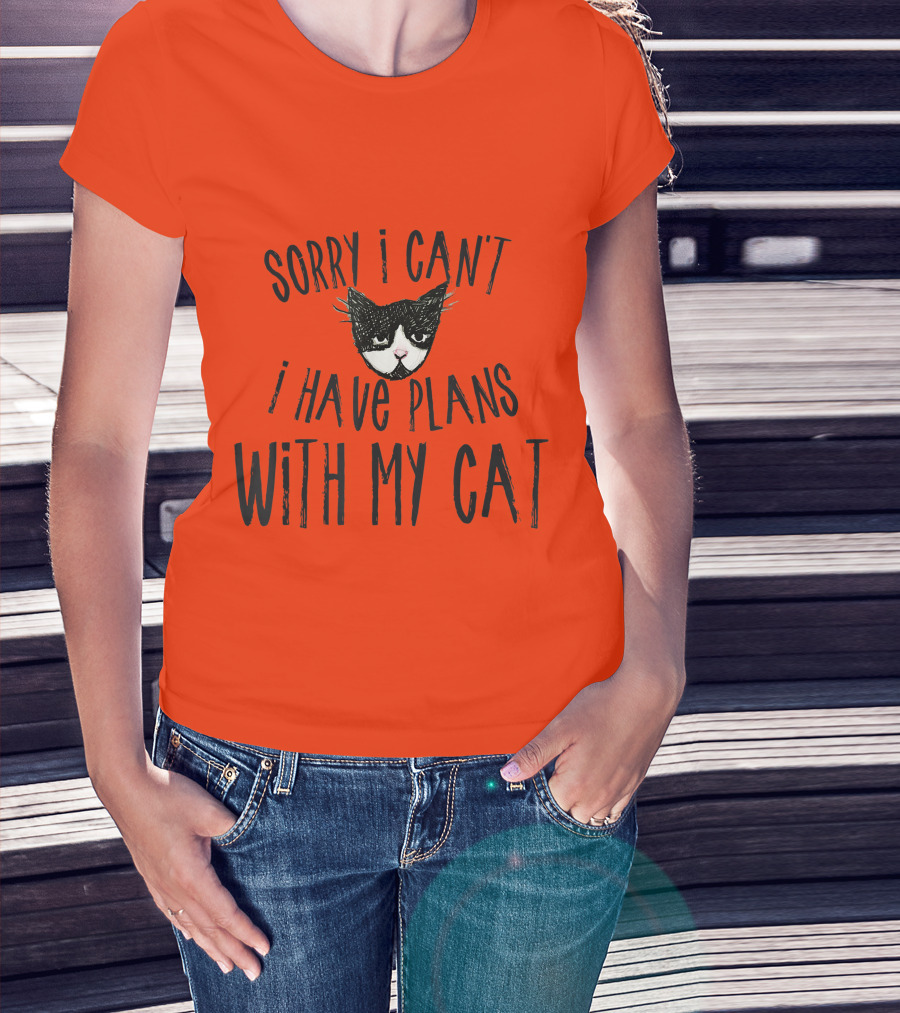 Sorry I Can't I Have Plans With My Cat Retro Colored T-Shirt