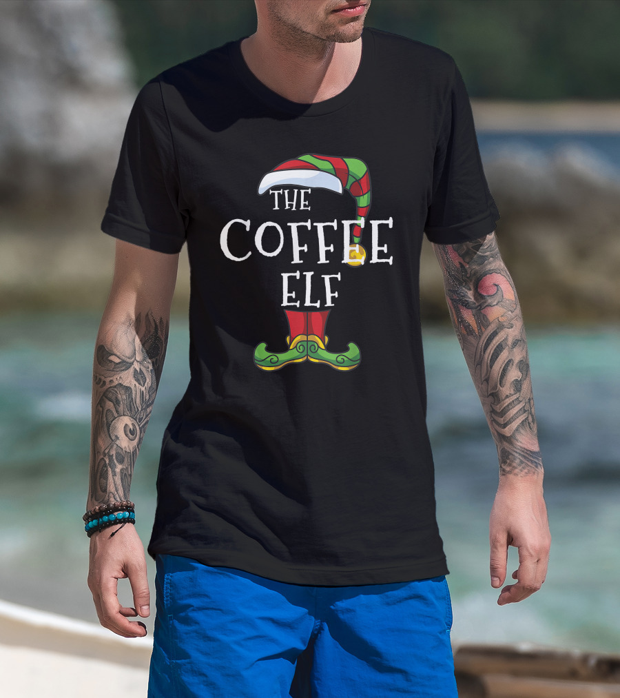 The Coffee Elf Christmas Holiday Family Pajama Party T-Shirt