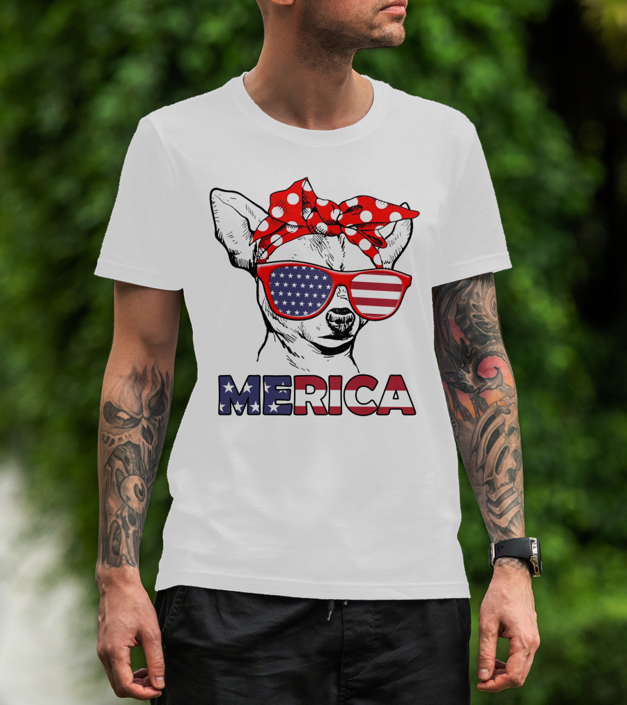 Chihuahua Merica USA Patriotic Glasses And Bandana T-Shirt