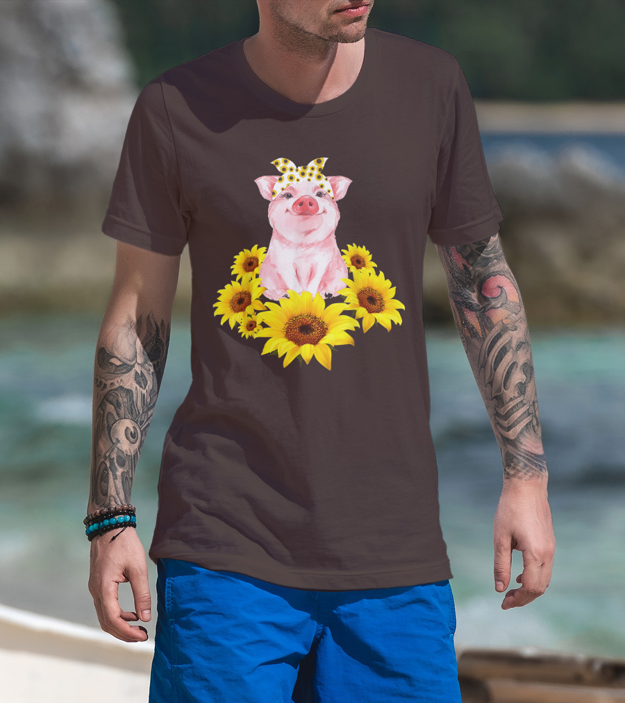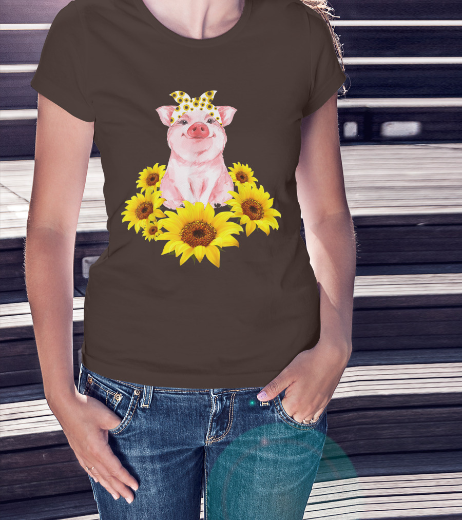 Lovely Piggy Surrounded By Sunflowers T-Shirt