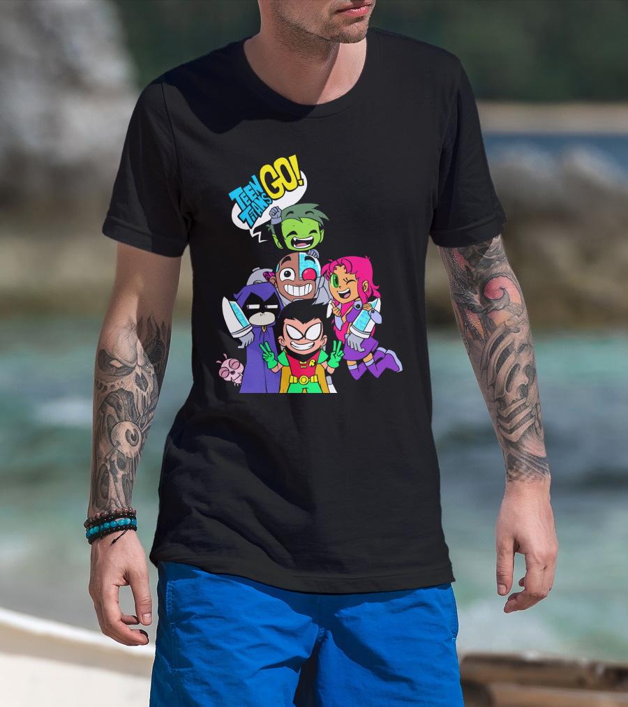 The Teen Titans Go Animated Characters Group T-shirt is designed for everyday wear and a consistent fit. Fabric is pre-shrunk ring-spun cotton with durable stitching. See the size chart below for exact measurements.