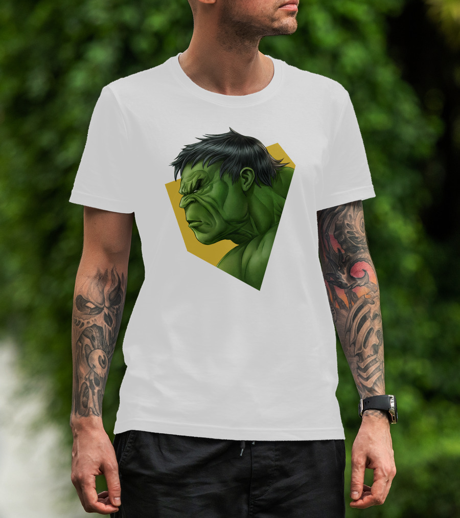 The Hulk Avenger Green Muscle Hero T-shirt is designed for everyday wear and a consistent fit. Fabric is pre-shrunk ring-spun cotton with durable stitching. See the size chart below for exact measurements.