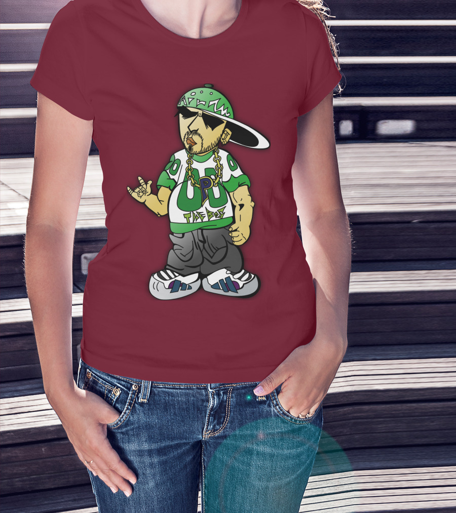 HipHop Cartoon Character With UP The Posse On Green Snapback And Chain T-Shirt