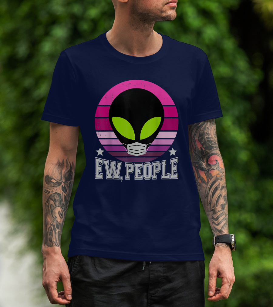 The Ew People Alien Mask Retro Magenta Sunset T-shirt is designed for everyday wear and a consistent fit. Fabric is pre-shrunk ring-spun cotton with durable stitching. See the size chart below for exact measurements.