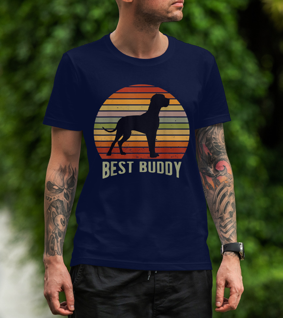 The Best Buddy Vintage Dog Silhouette Retro Sunset T-shirt is designed for everyday wear and a consistent fit. Fabric is pre-shrunk ring-spun cotton with durable stitching. See the size chart below for exact measurements.
