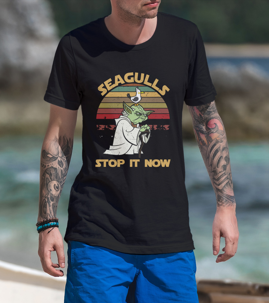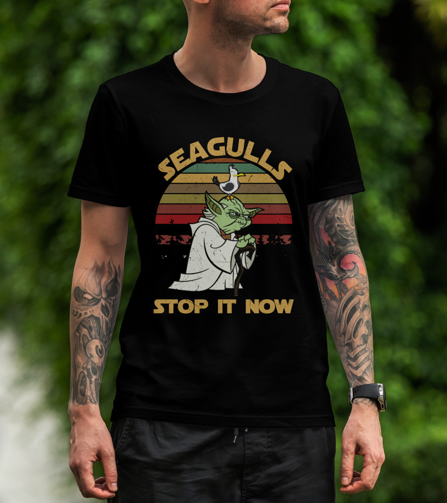 The Seagulls Stop It Now Yoda T-shirt is designed for everyday wear and a consistent fit. Fabric is pre-shrunk ring-spun cotton with durable stitching. See the size chart below for exact measurements.