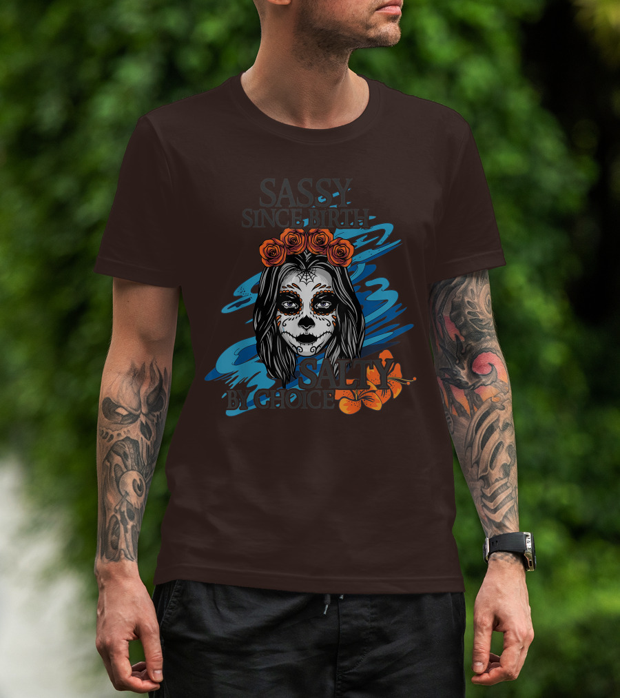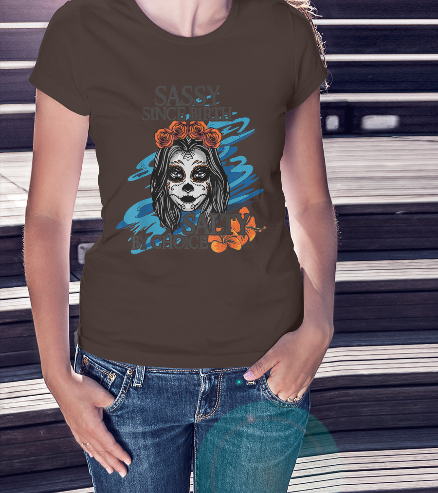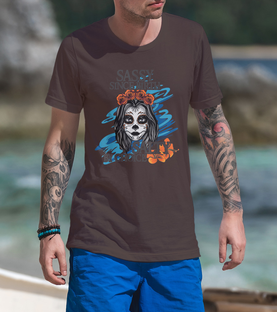 Sassy Since Birth Salty By Choice Skull Ocean Floral T-Shirt