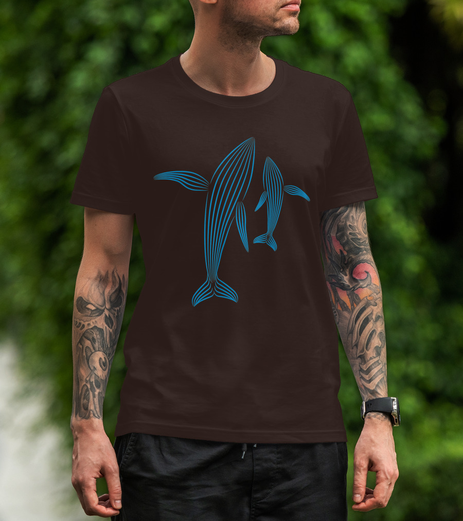Save The Whales Blue Line Art Humpback Whale Pair Awareness T-Shirt