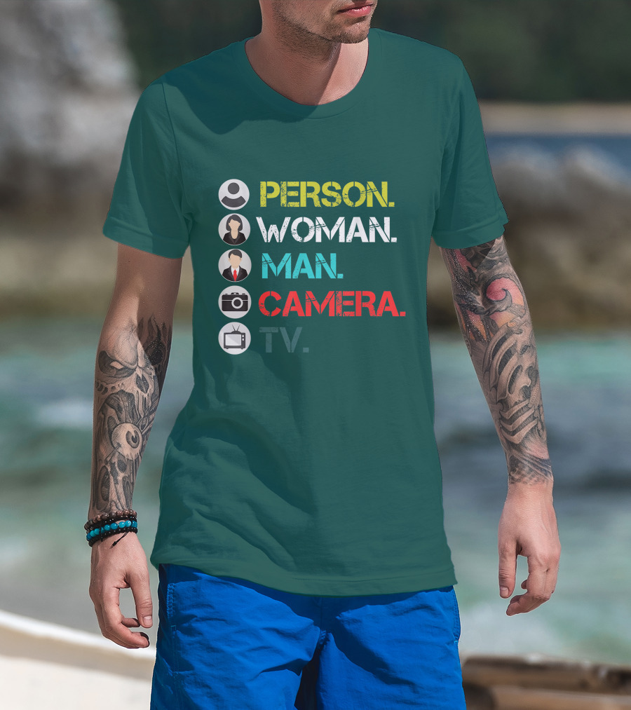 The PERSON WOMAN MAN CAMERA TV Circle Icons T-shirt is designed for everyday wear and a consistent fit. Fabric is pre-shrunk ring-spun cotton with durable stitching. See the size chart below for exact measurements.