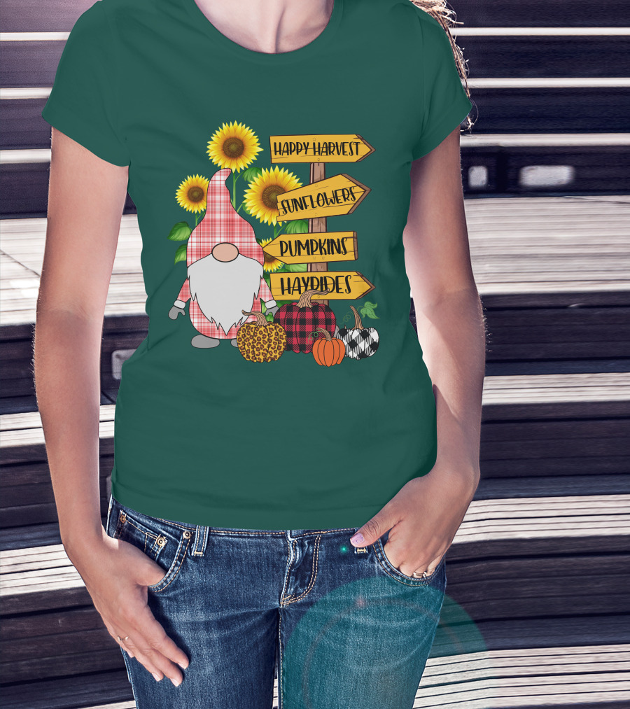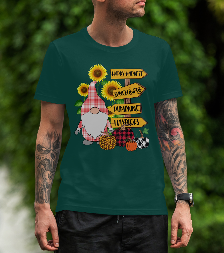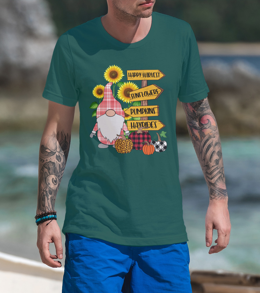 Happy Harvest Sunflowers Pumpkins Hayrides Gnome T-Shirt
