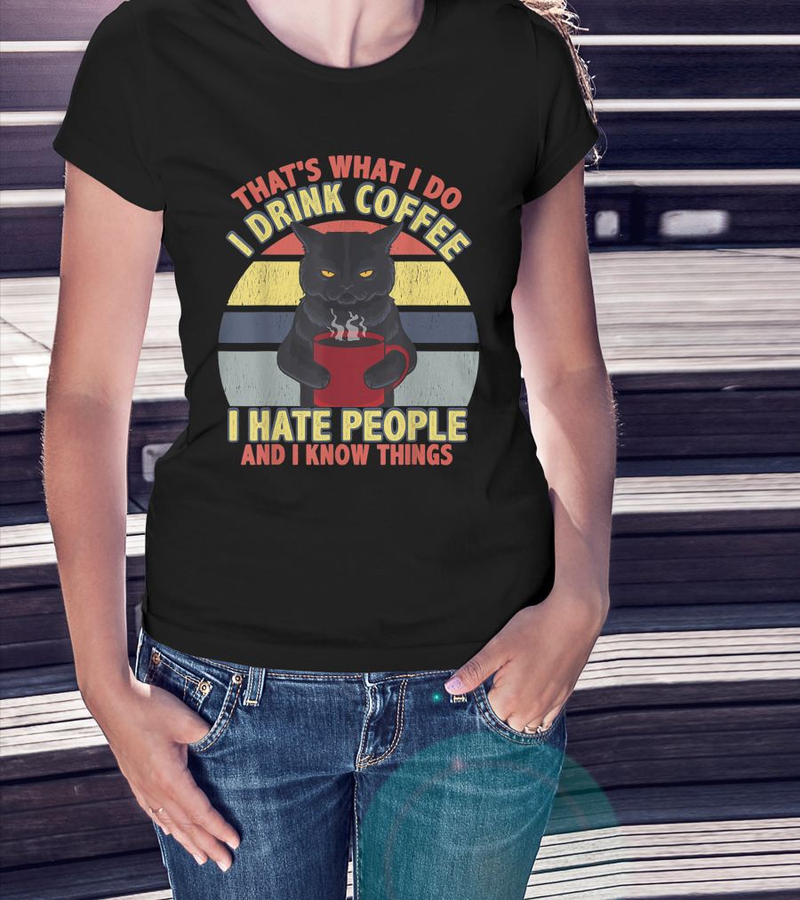 That's What I Do I Drink Coffee I Hate People And I Know Things Funny Cat T-Shirt