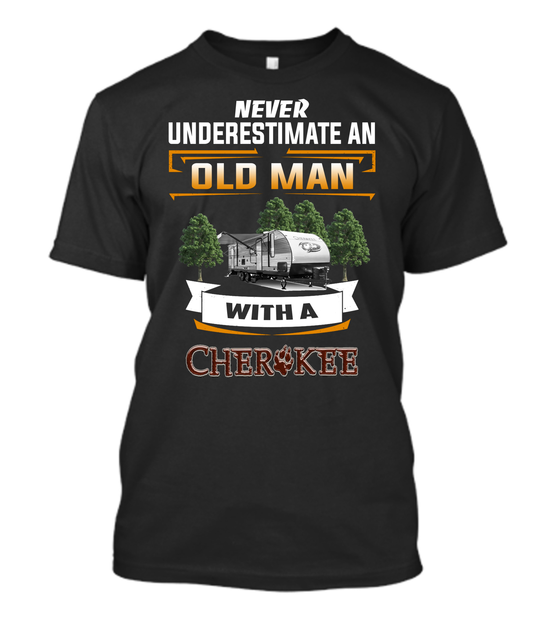 The Never Underestimate an Old Man with a Forest River Cherokee Trailer T-shirt is designed for everyday wear and a consistent fit. Fabric is pre-shrunk ring-spun cotton with durable stitching. See the size chart below for exact measurements.