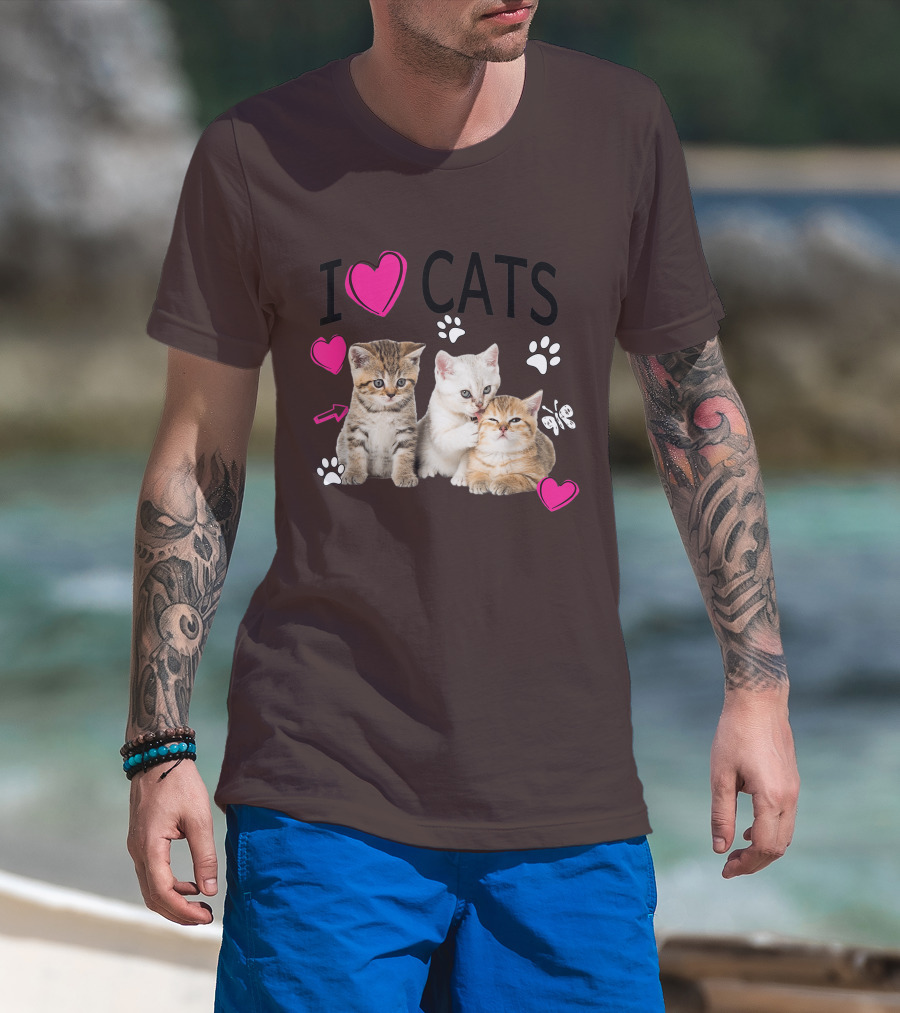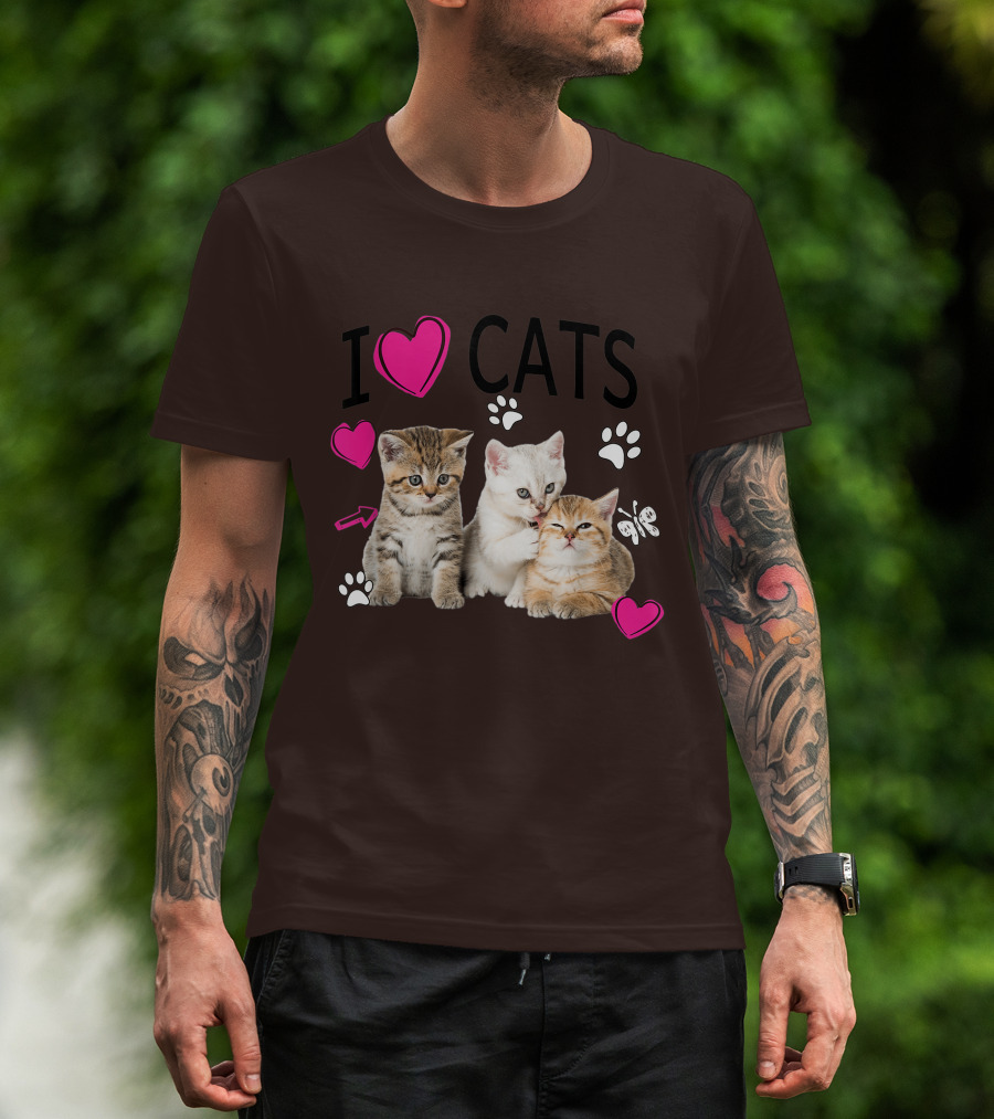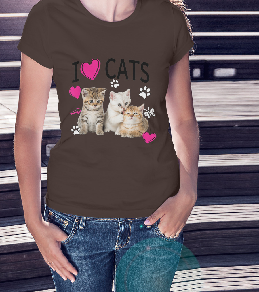 I Heart Cats With Kittens And Pink Hearts T-Shirt