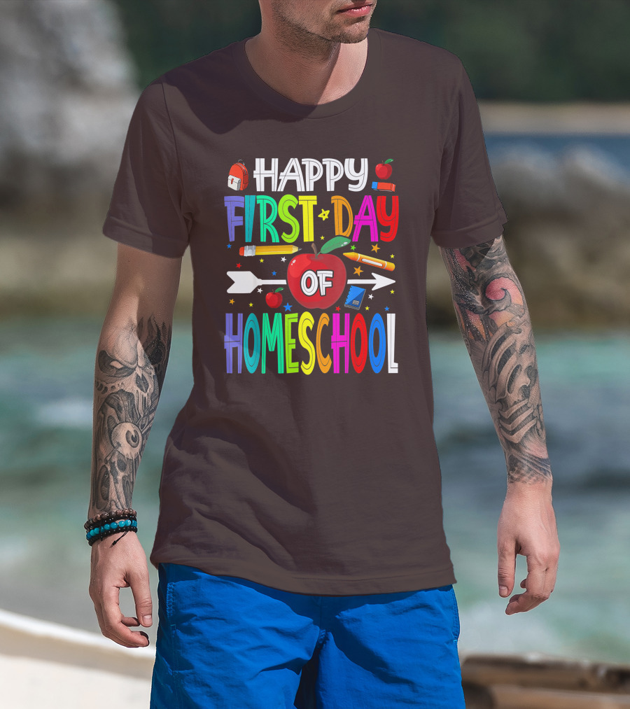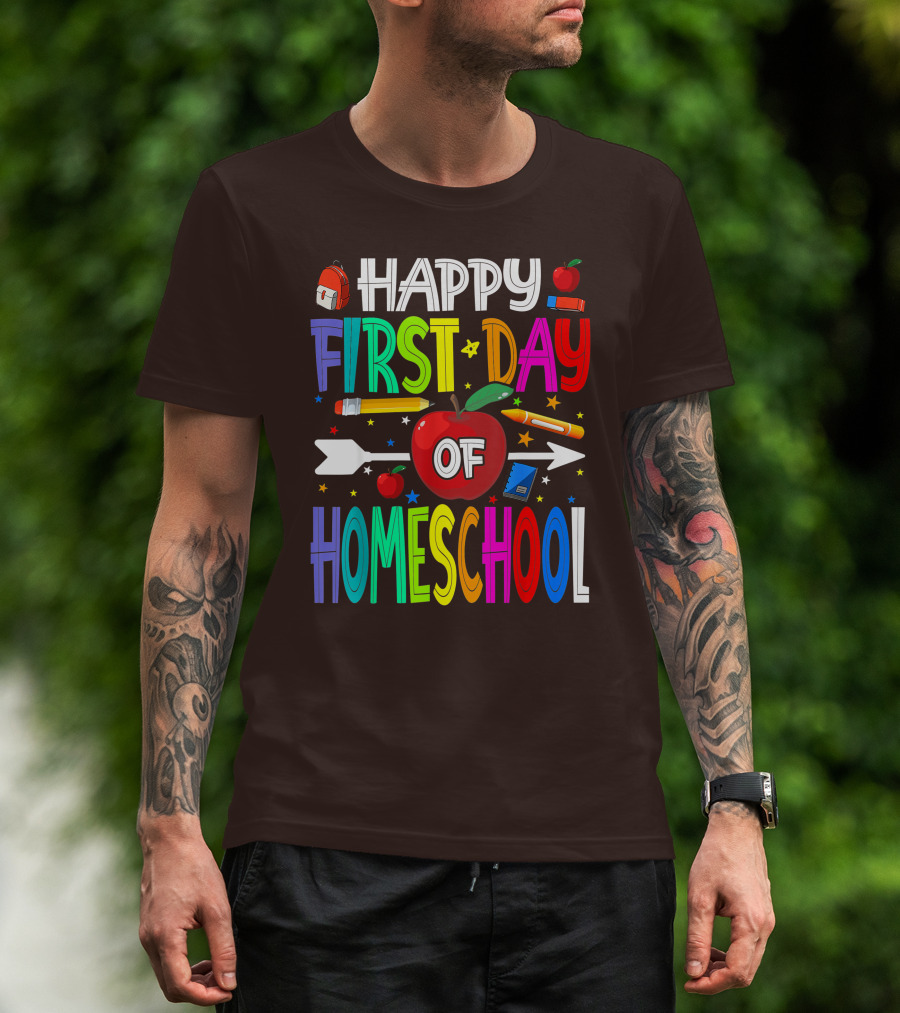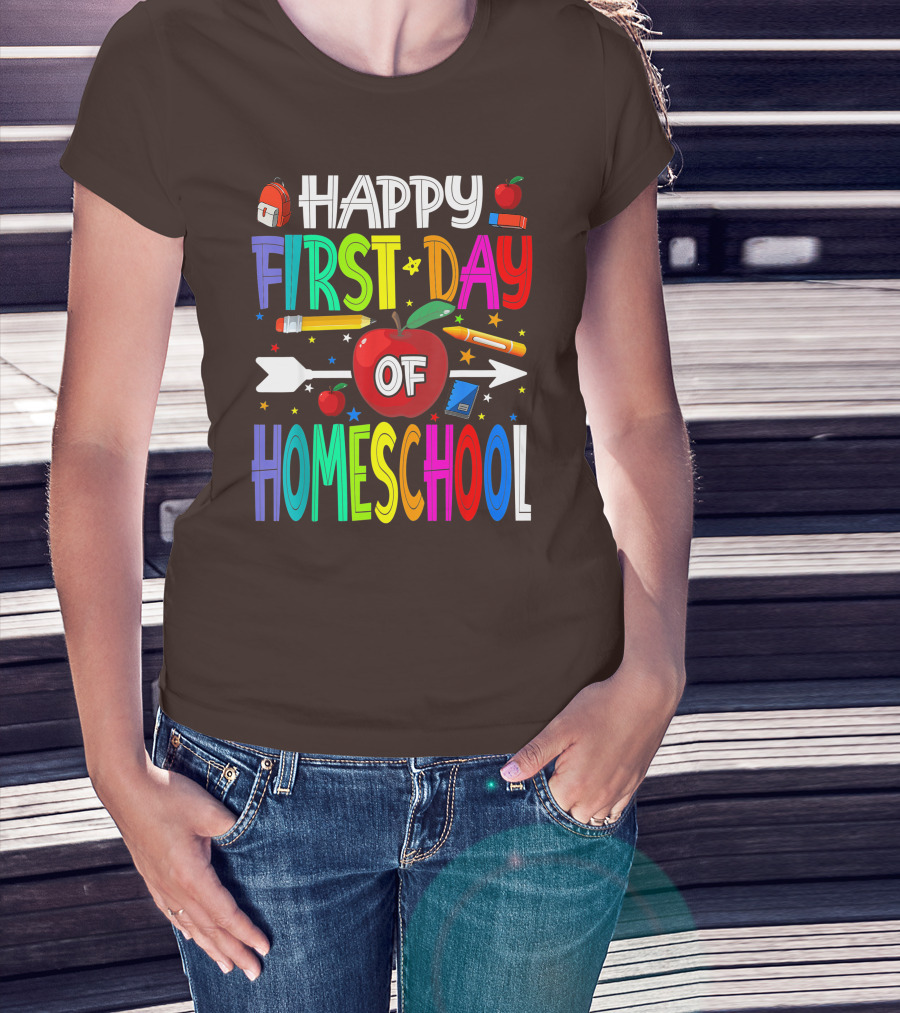 Happy First Day Of Homeschool With Apples And School Supplies Elements T-Shirt