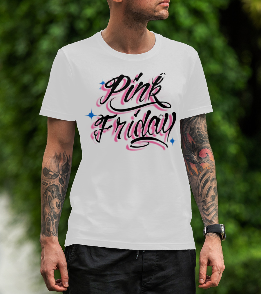 The Pink Friday Retro Script with Star Accents T-shirt is designed for everyday wear and a consistent fit. Fabric is pre-shrunk ring-spun cotton with durable stitching. See the size chart below for exact measurements.