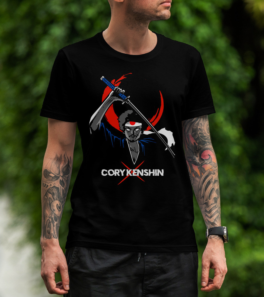 The CoryxKenshin Samurai with Sword in Blue Kimono and Red Crescent Background T-shirt is designed for everyday wear and a consistent fit. Fabric is pre-shrunk ring-spun cotton with durable stitching. See the size chart below for exact measurements.