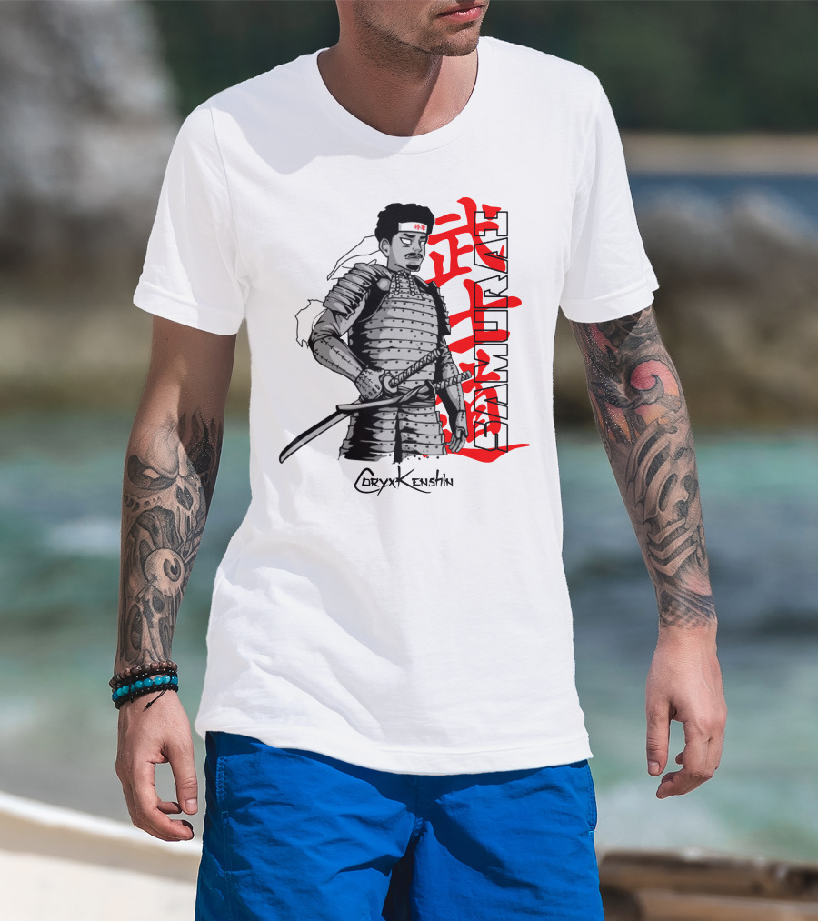 CoryxKenshin Samurai In Armor With Red Kanji T-Shirt