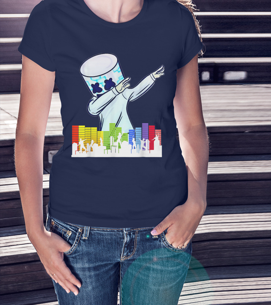 The All I Want For Christmas Is Marshmallow DJ Dance Love Mello Dabbing Music Equalizer T-shirt is designed for everyday wear and a consistent fit. Fabric is pre-shrunk ring-spun cotton with durable stitching. See the size chart below for exact measurements.