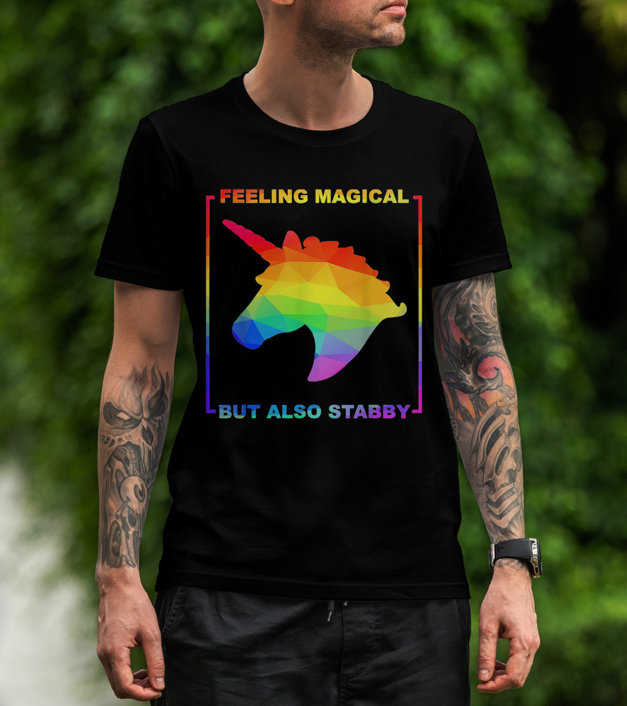 Feeling Magical But Also Stabby Rainbow Unicorn T-Shirt