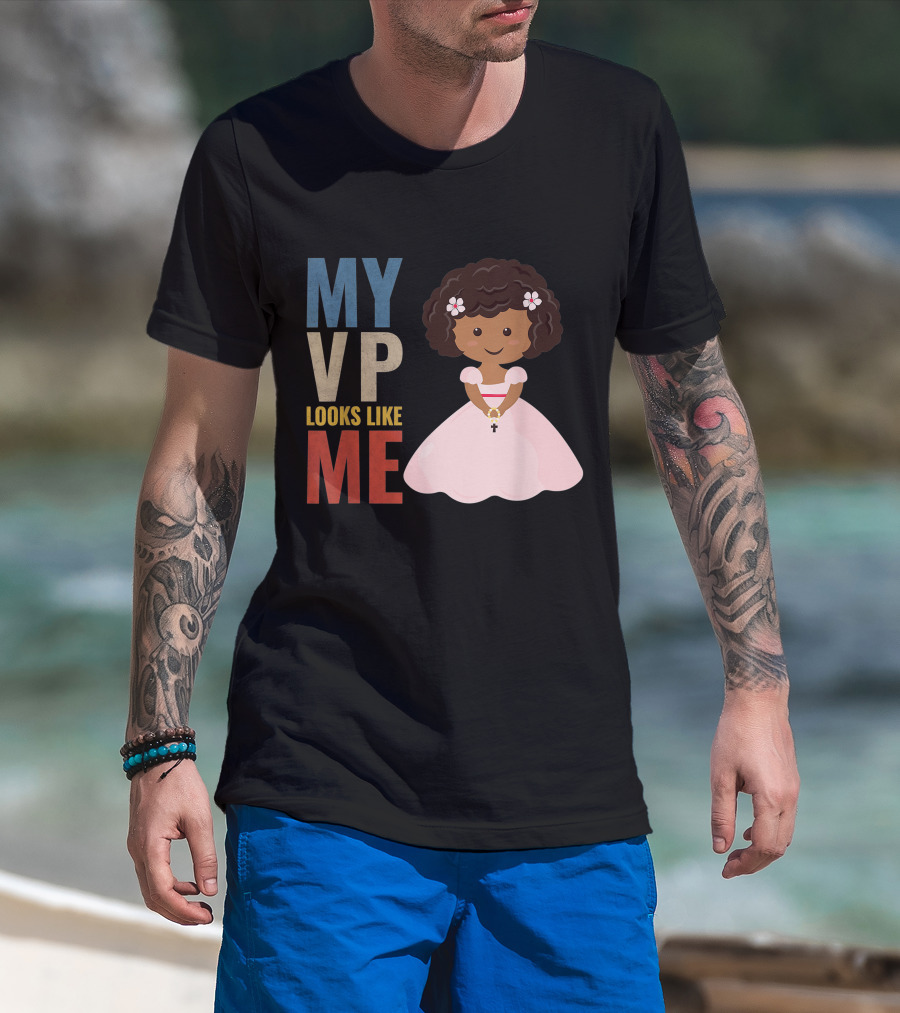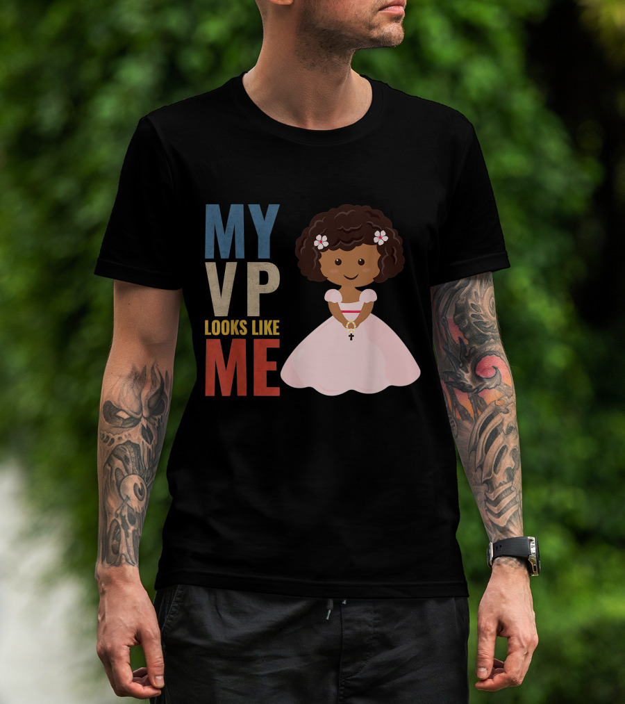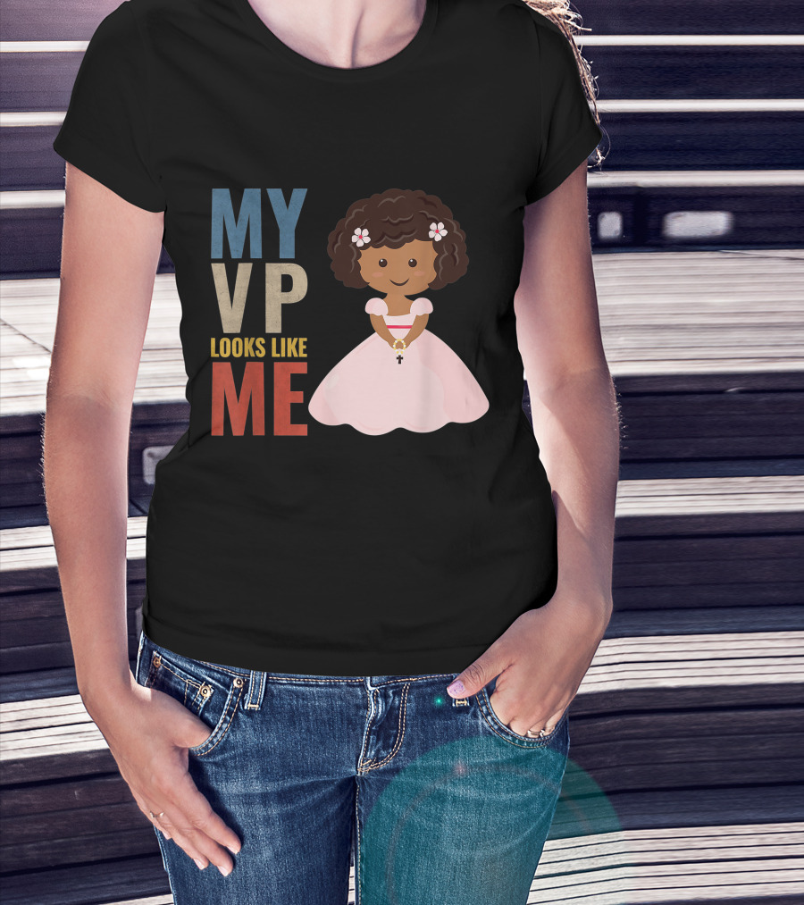 MY VP Looks Like Me Pink Dress Girl Holding Cross T-Shirt