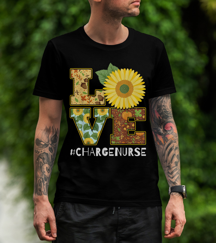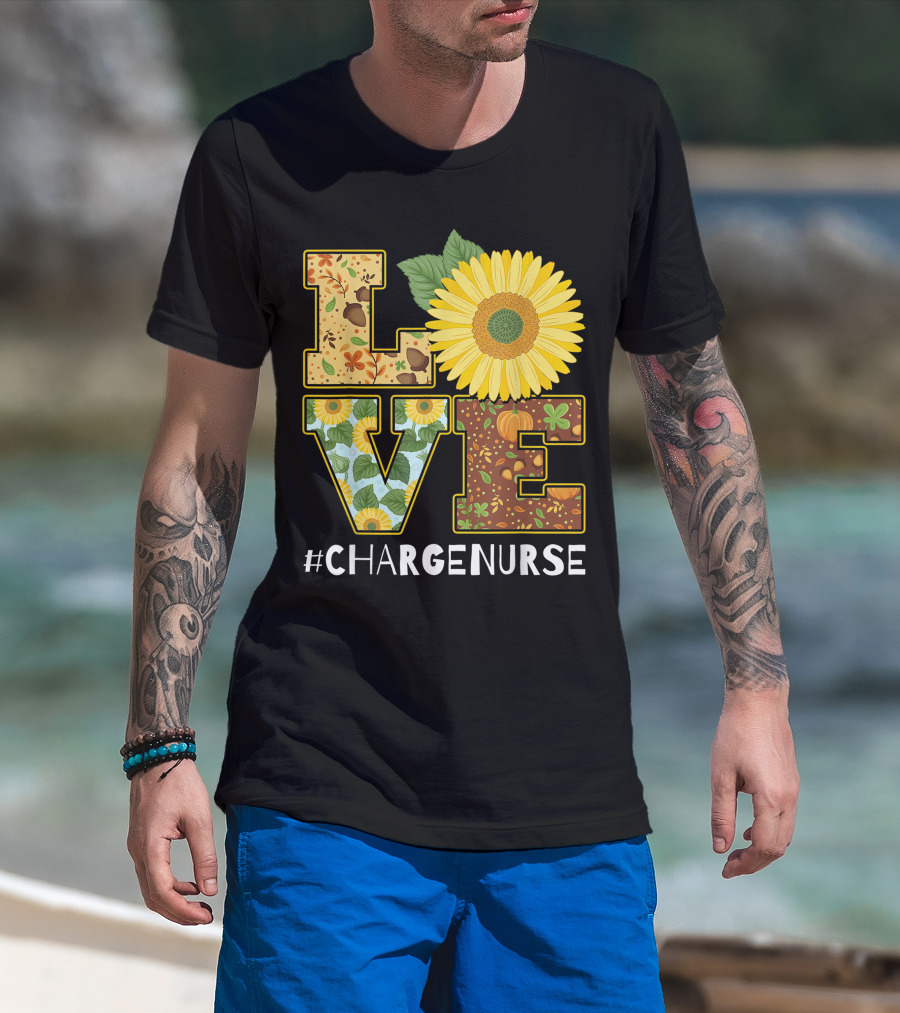 Love Sunflower Autumn Leaves Charge Nurse T-Shirt
