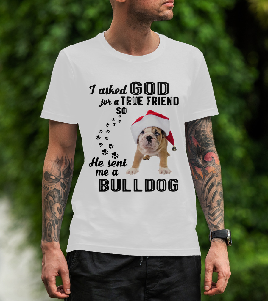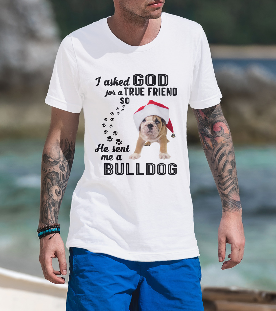 I Asked God For A True Friend So He Sent Me A Christmas Bulldog T-Shirt