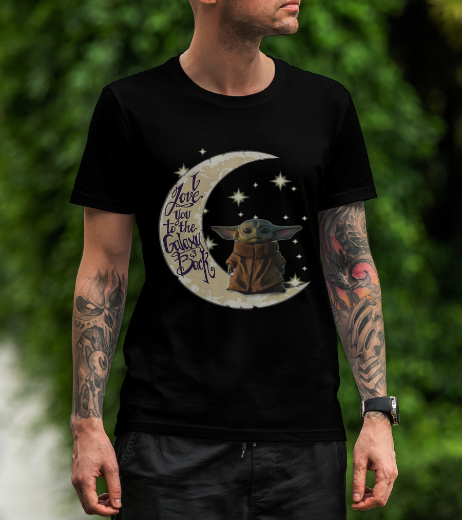 Baby Yoda I Love You To The Galaxy And Back Crescent Moon Stars T-Shirt