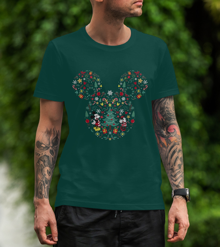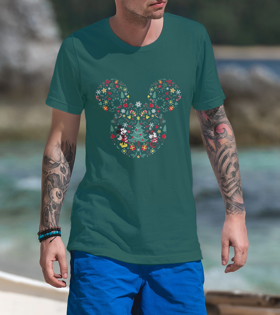 Disney Mickey And Minnie Christmas Tree Wreath Holiday Mashup T-Shirt