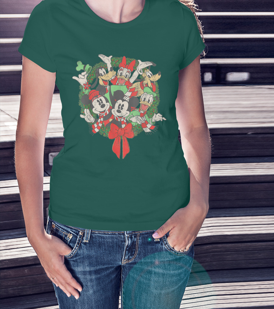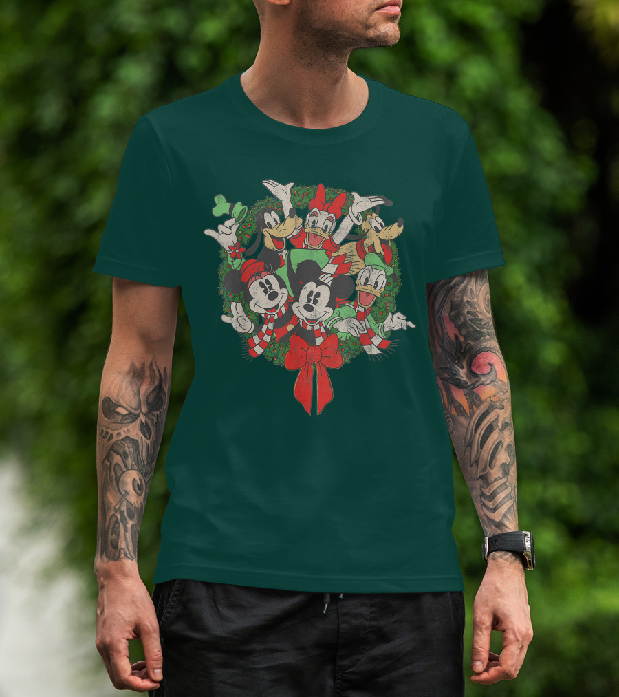 Disney Holiday Wreath Mickey Minnie Goofy Pluto Donald Christmas T-Shirt