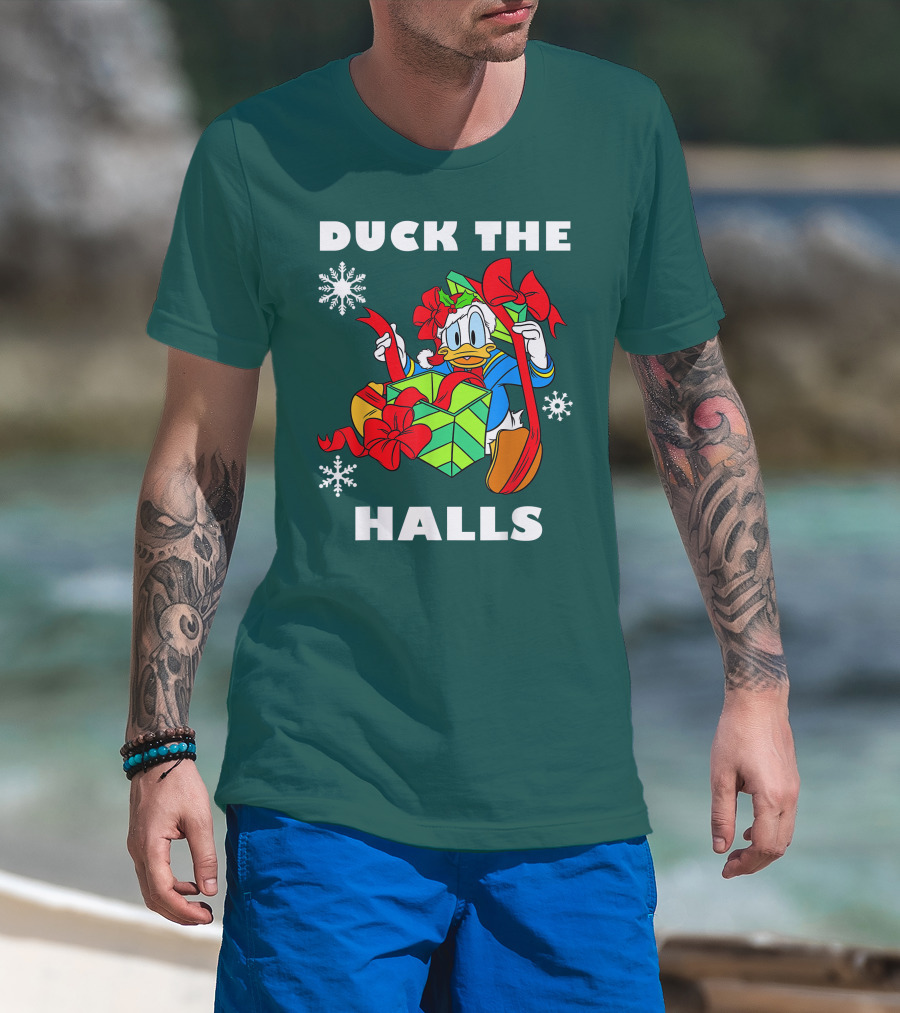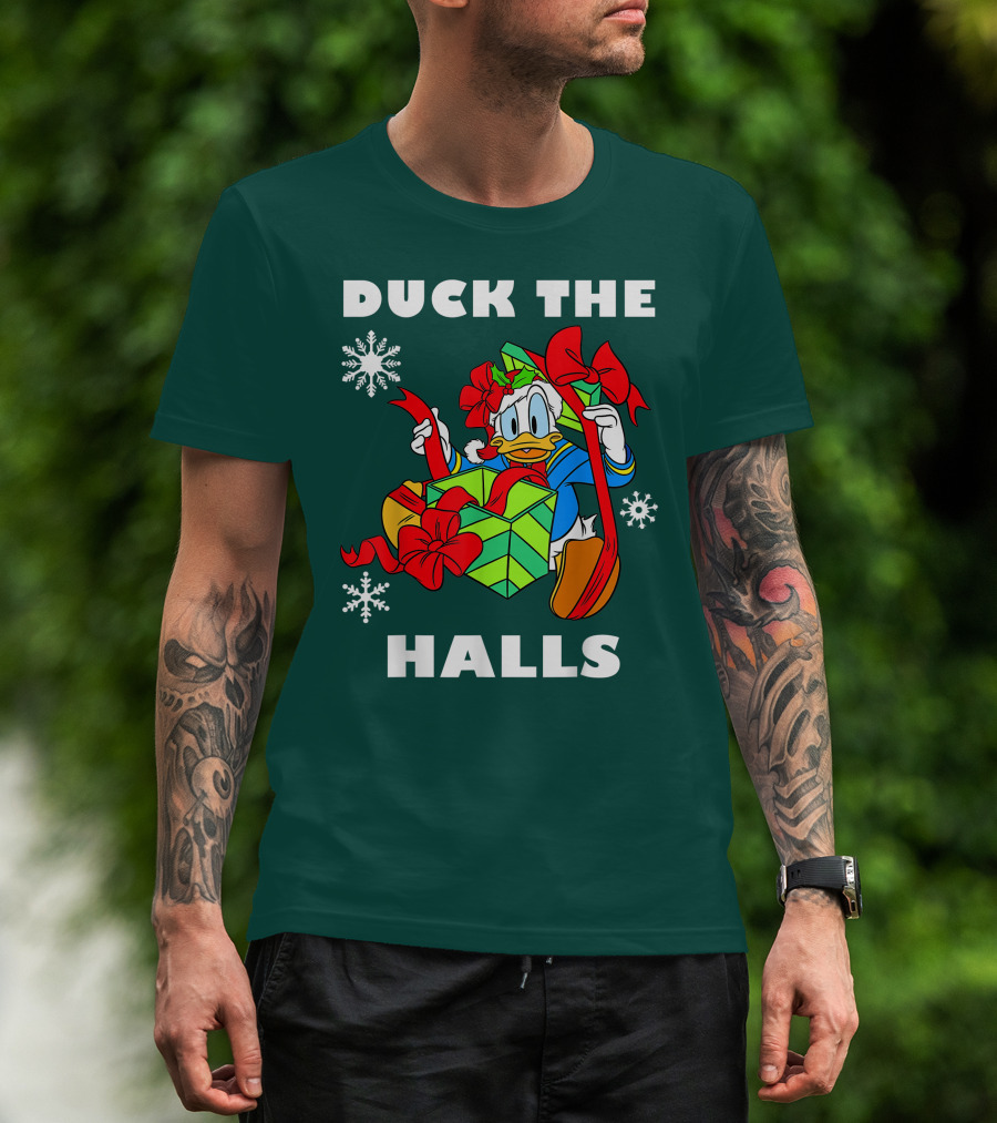 Disney Donald Duck The Halls Christmas Presents Snowflakes T-Shirt