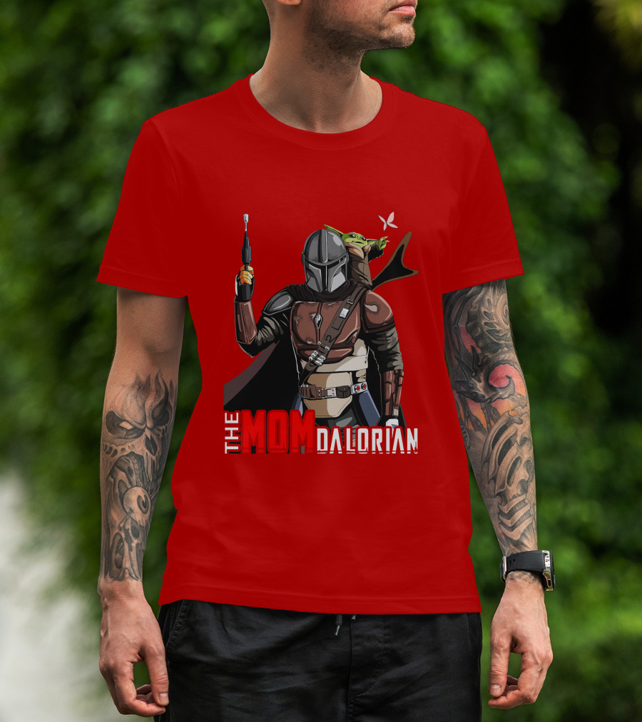The THE MOM DALORIAN BABY YODA T-shirt is designed for everyday wear and a consistent fit. Fabric is pre-shrunk ring-spun cotton with durable stitching. See the size chart below for exact measurements.