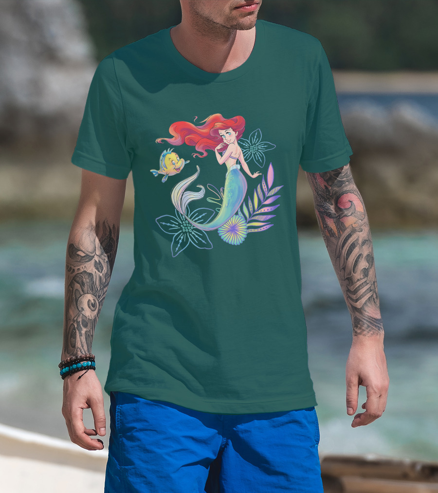 Disney The Little Mermaid Ariel Flounder Floral T-Shirt