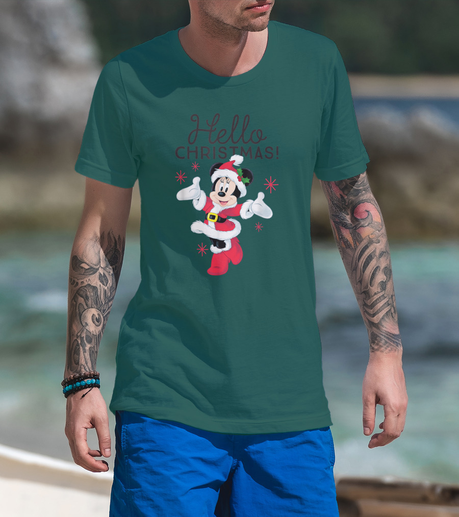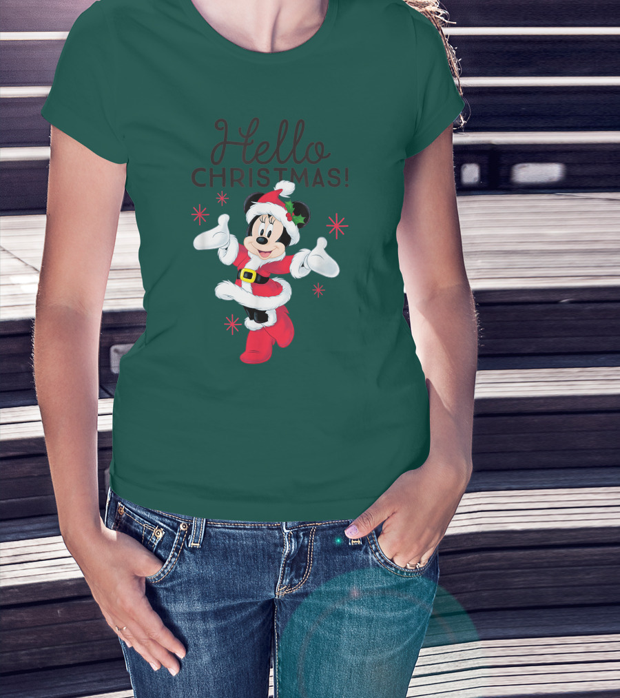 Disney Minnie Mouse Hello Christmas Holiday Santa T-Shirt