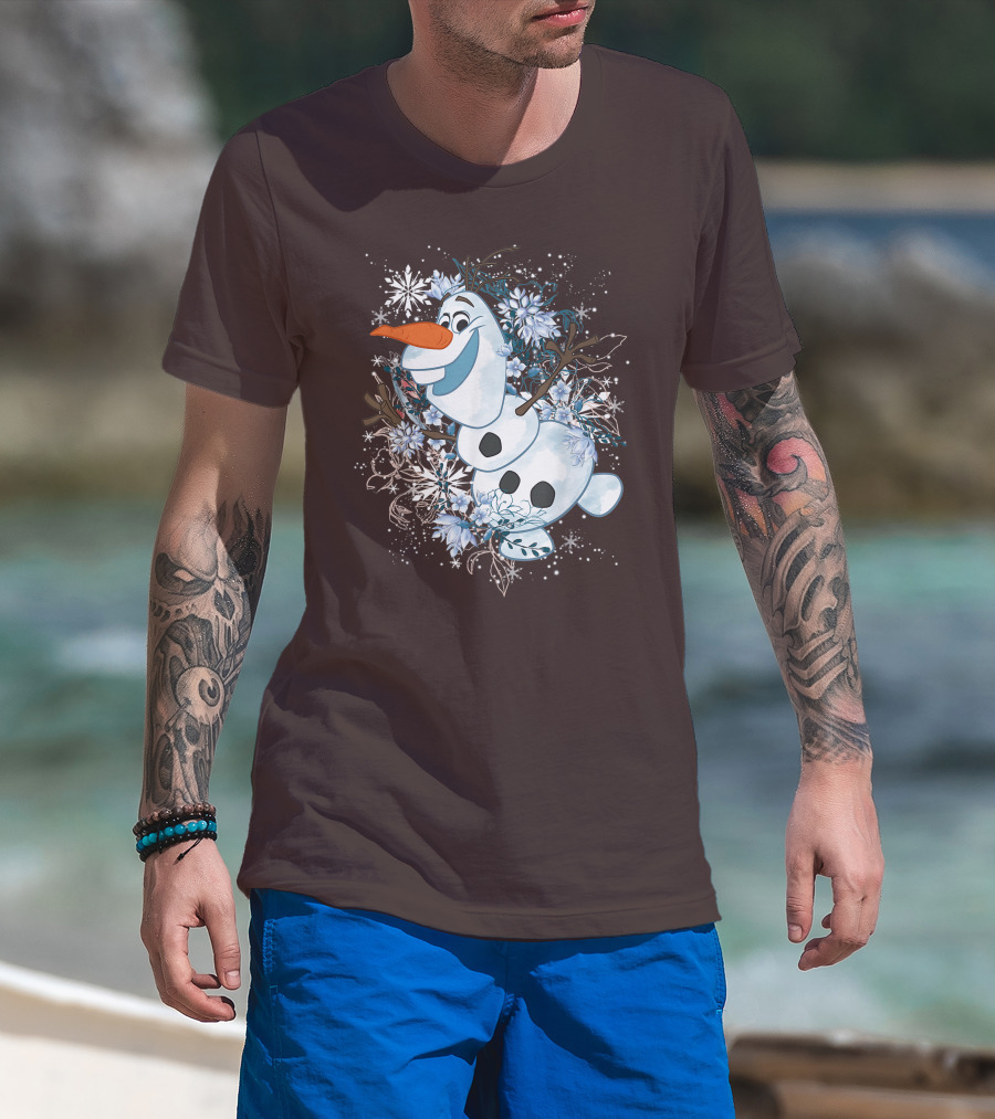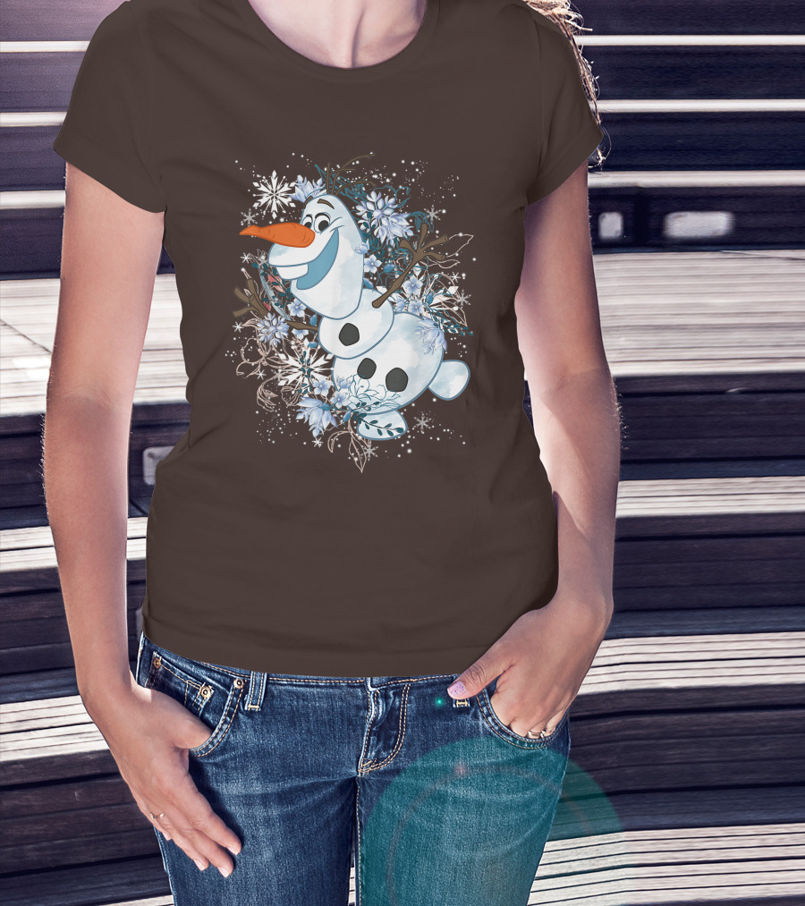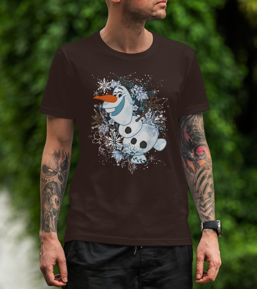 Olaf Dancing Surrounded By Snowflakes And Flowers From Disney Frozen T-Shirt
