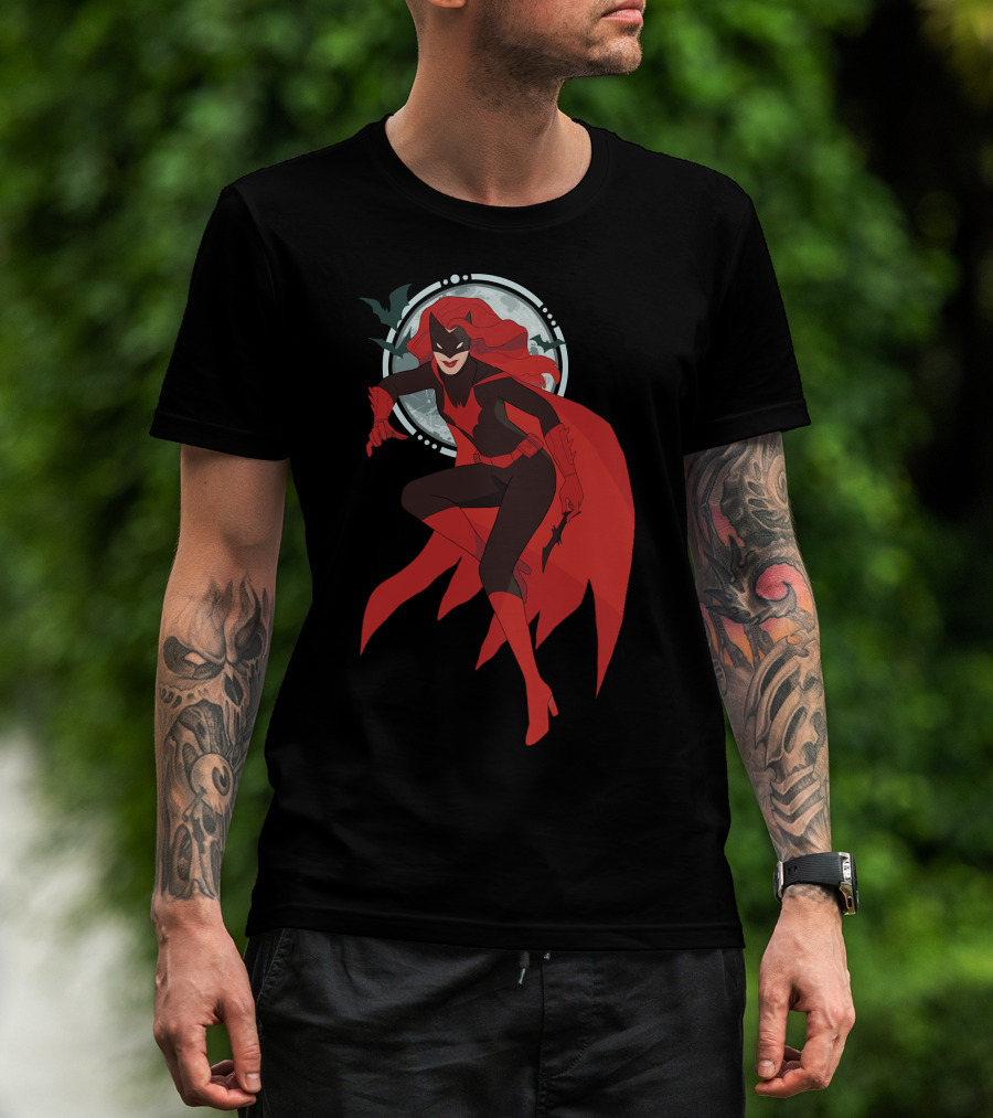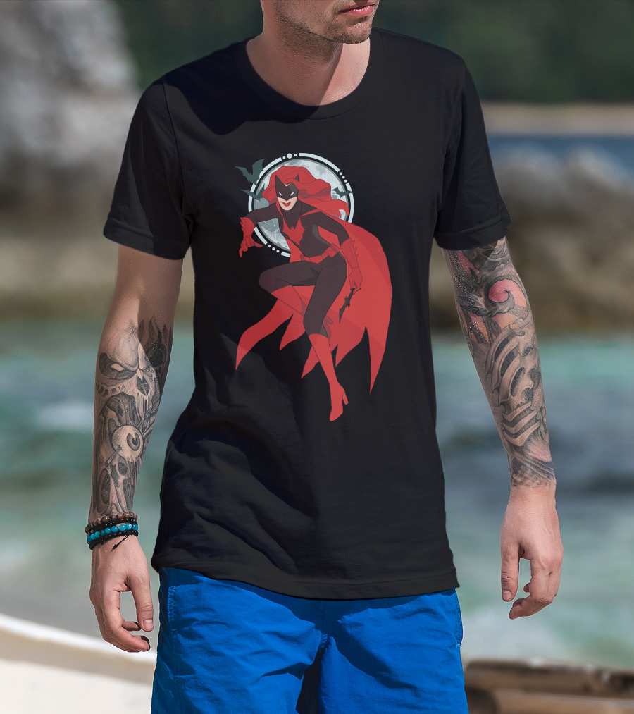Batwoman Moonlit Heroic Pose With Cape And Bat T-Shirt