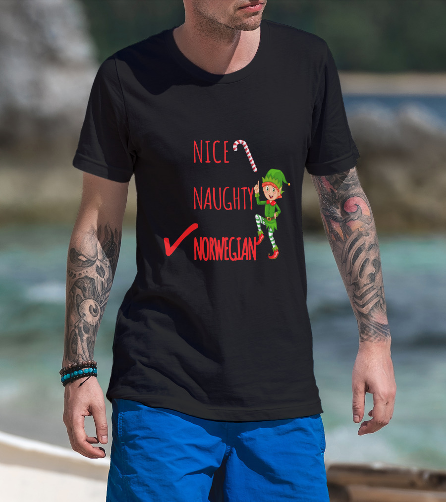 Nice Naughty Norwegian Elf Christmas Checklist T-Shirt