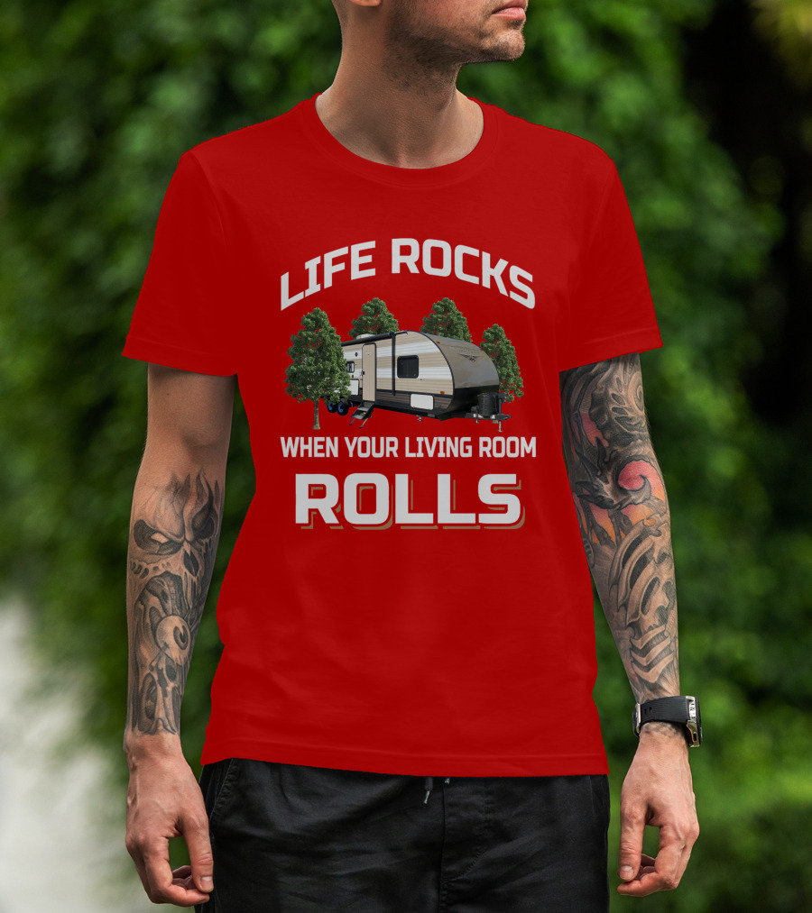 LIFE ROCKS WHEN YOUR LIVING ROOM ROLLS Wildwood Trailer Forest Adventure T-Shirt