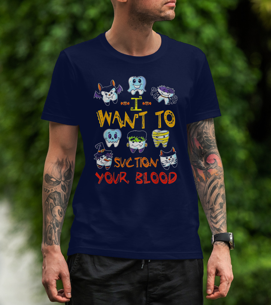I Want To Suction Your Blood Halloween Tooth Characters T-Shirt
