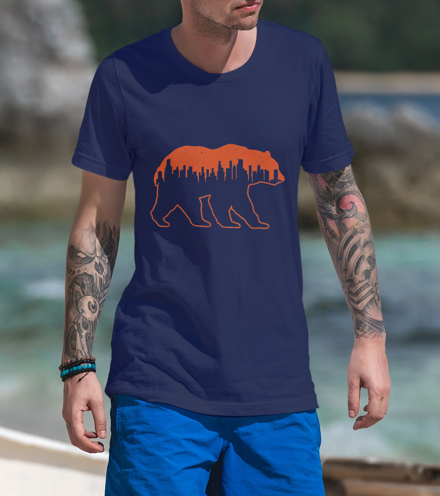 Vintage Downtown Chicago City Skyline Bear Silhouette Novelty T-Shirt