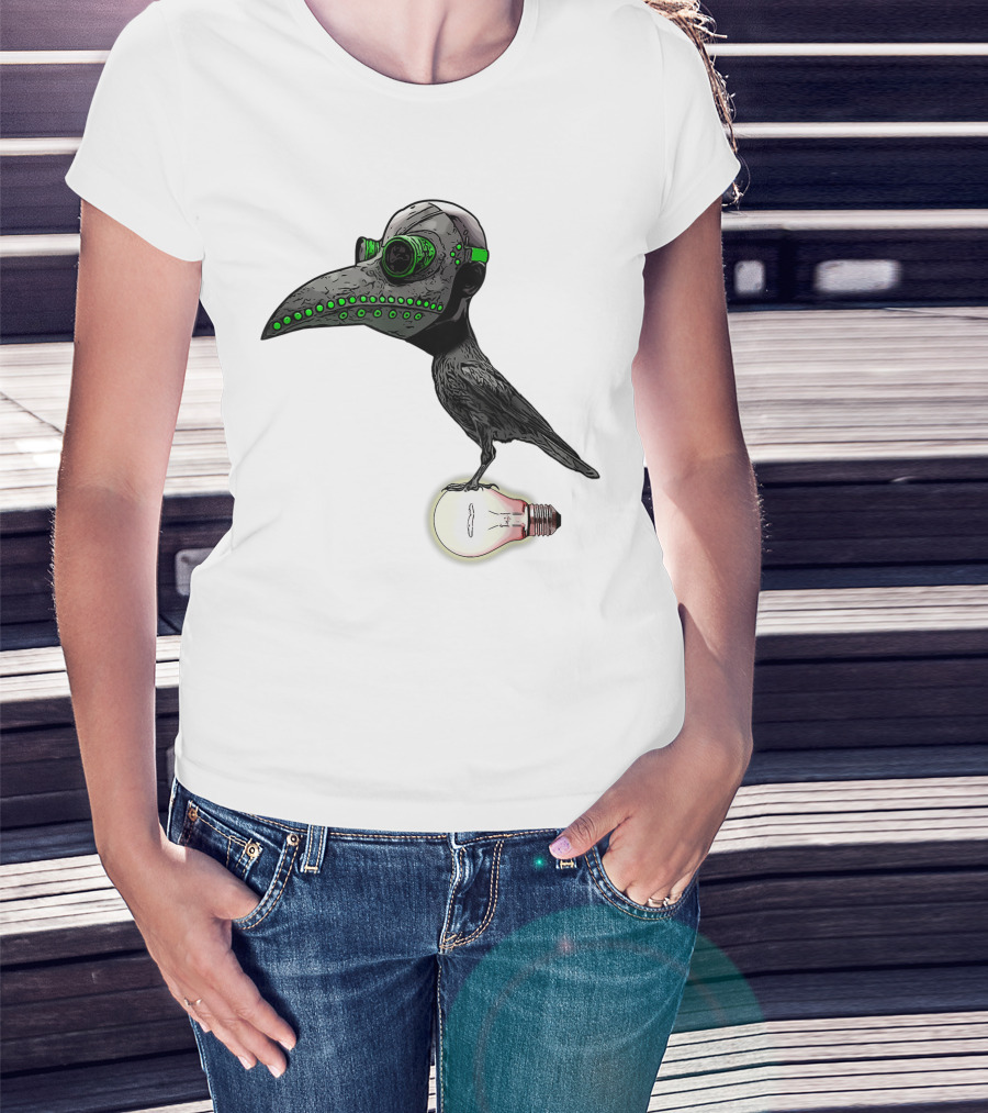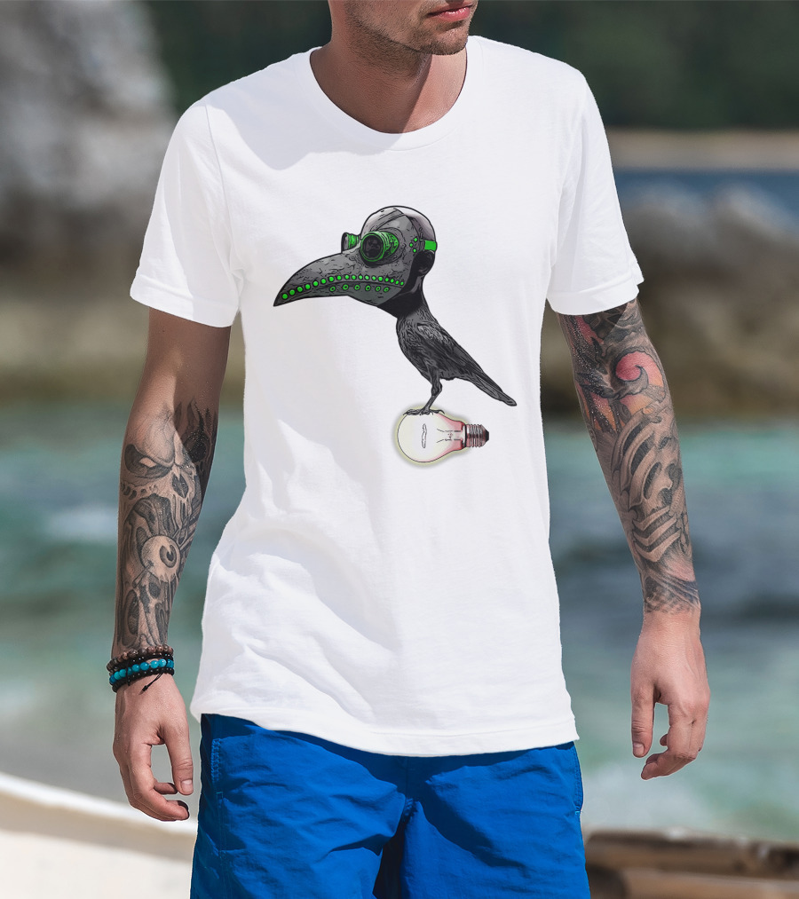 Bird In Plague Doctor Mask Perched On Light Bulb T-Shirt