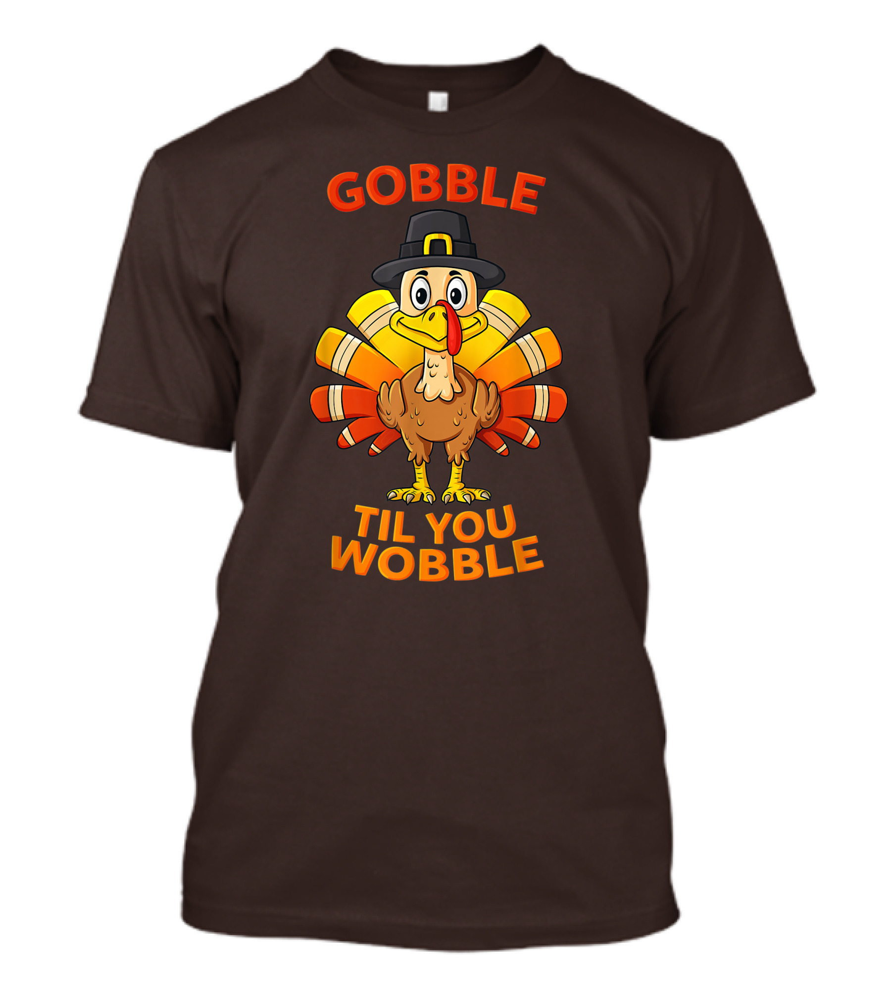 The Gobble Til You Wobble Thanksgiving Turkey Pilgrim Hat T-shirt is designed for everyday wear and a consistent fit. Fabric is pre-shrunk ring-spun cotton with durable stitching. See the size chart below for exact measurements.