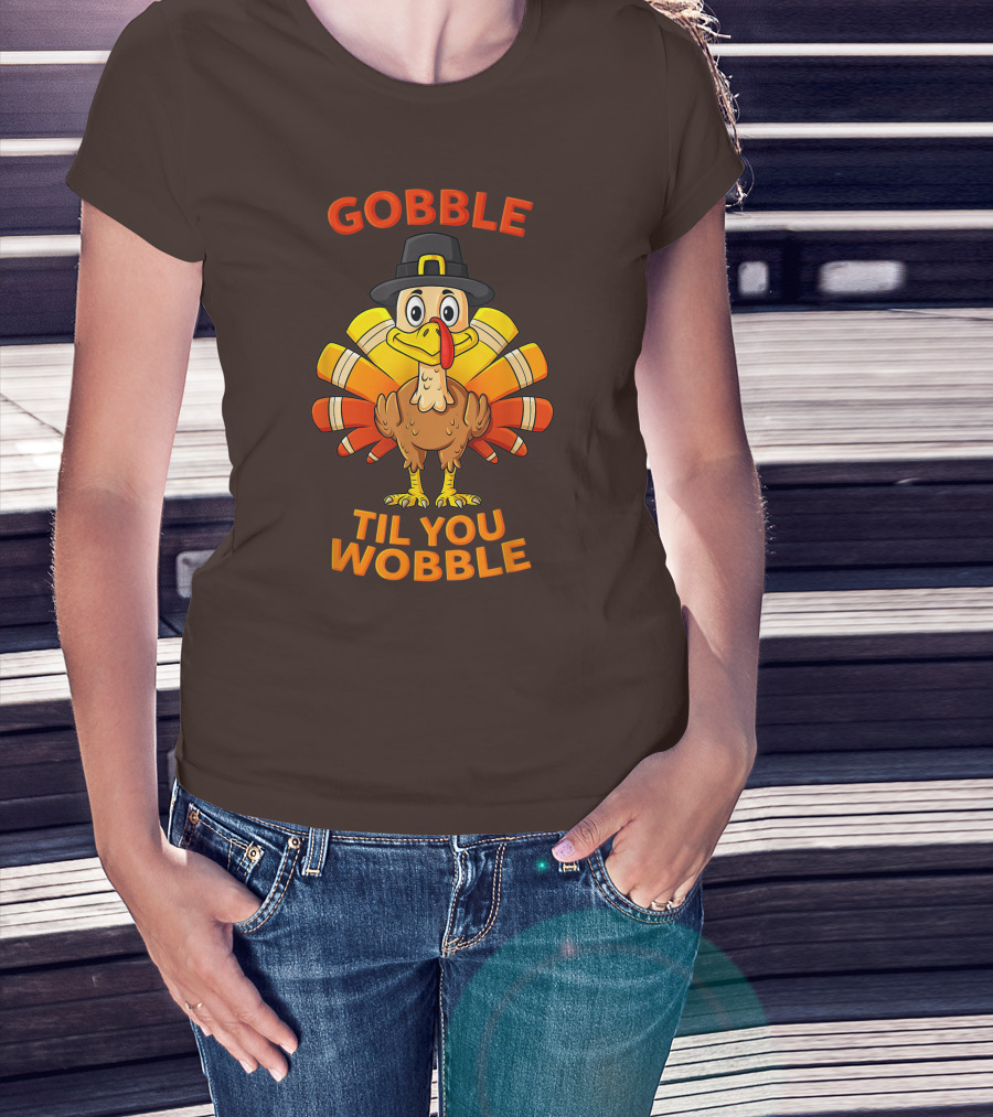 Gobble Til You Wobble Thanksgiving Turkey Pilgrim Hat T-Shirt