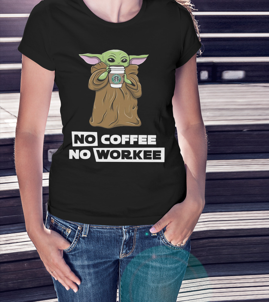 Baby Yoda Holding Coffee Cup No Coffee No Workee T-Shirt