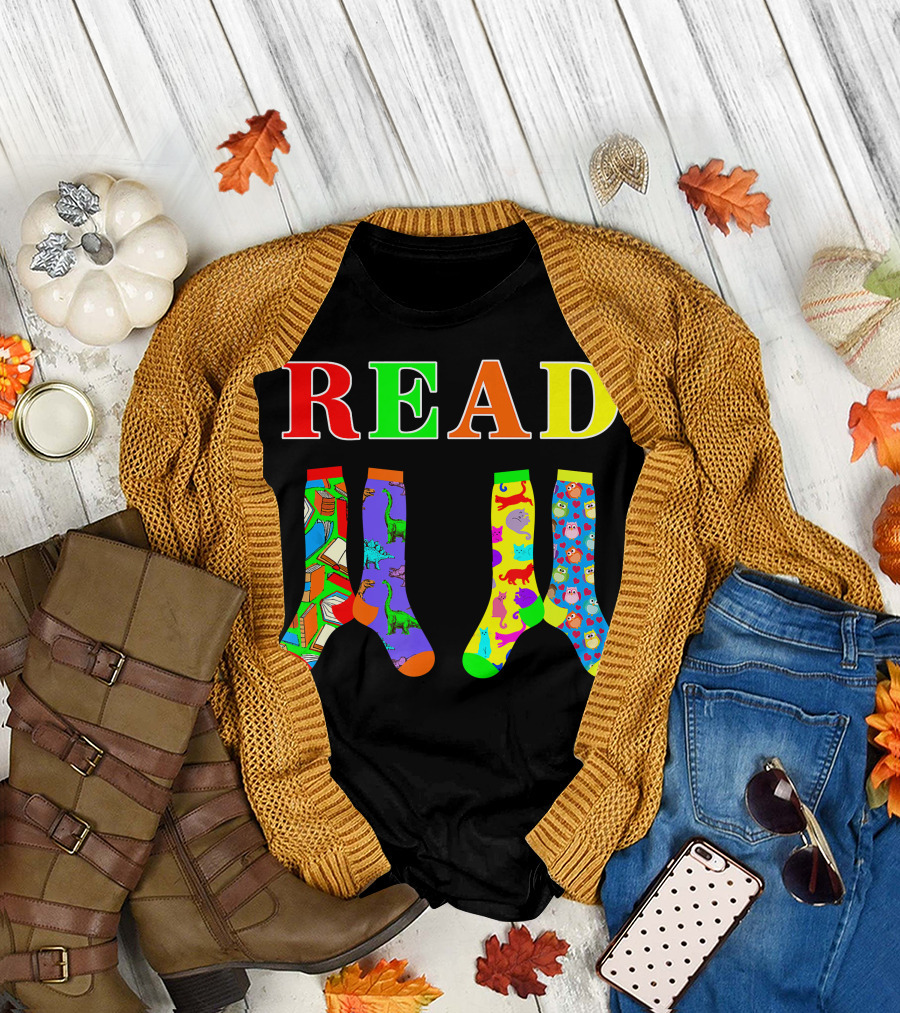 READ Colorful Dinosaur And Owl Books Wacky Socks For Wacky Sock Day T-Shirt