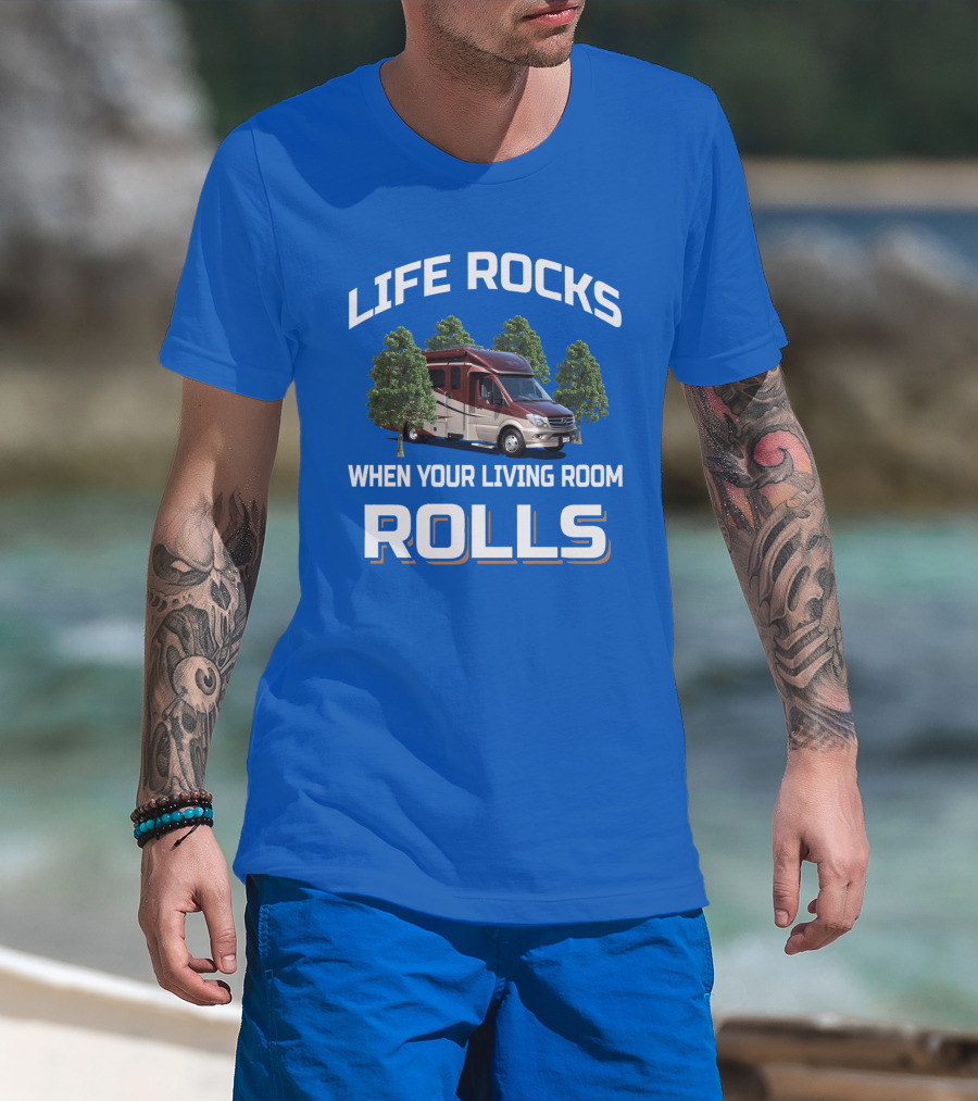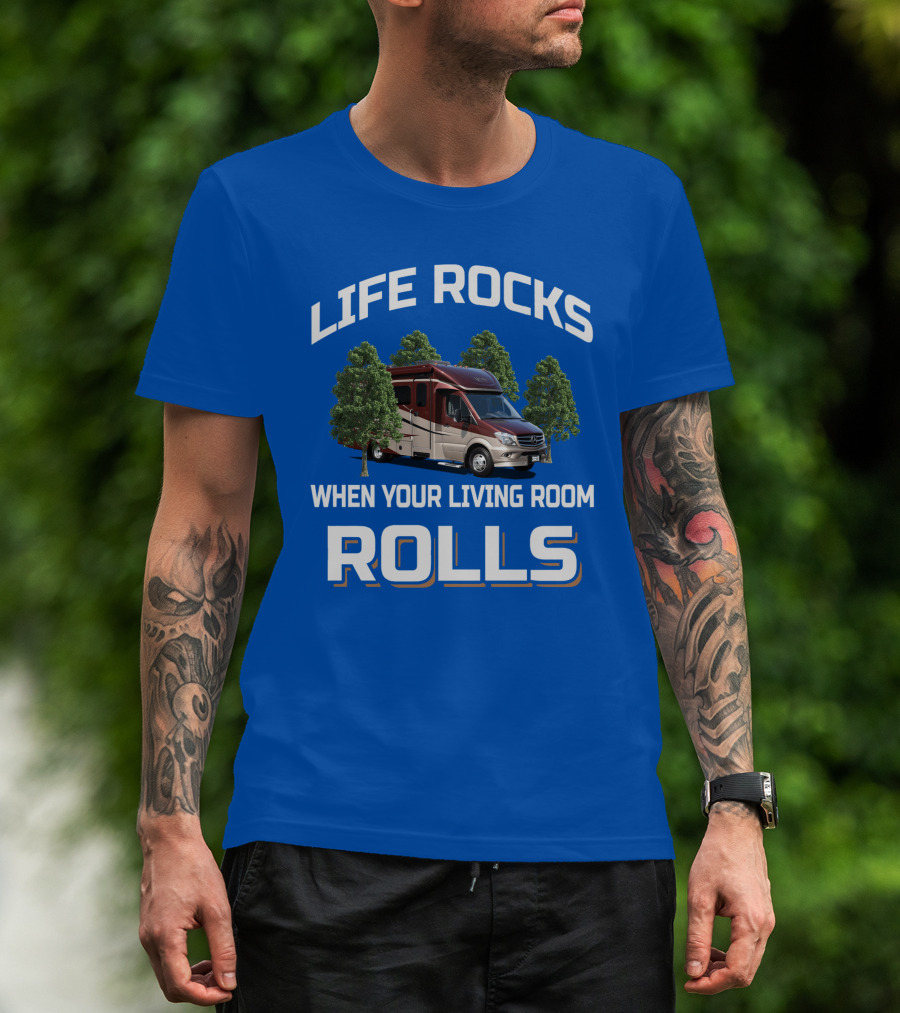 LIFE ROCKS WHEN YOUR LIVING ROOM ROLLS RV CAMPER MOTORHOME T-Shirt