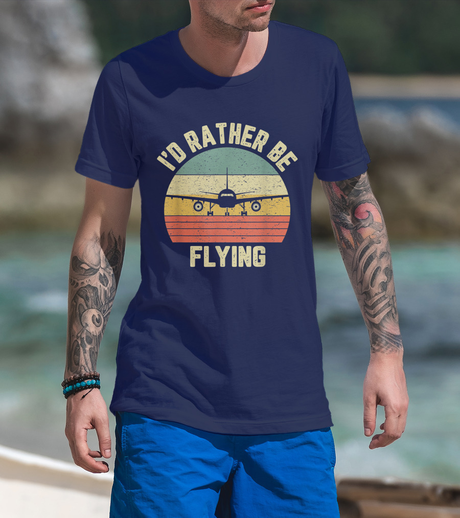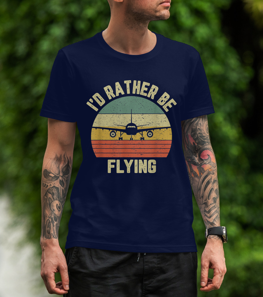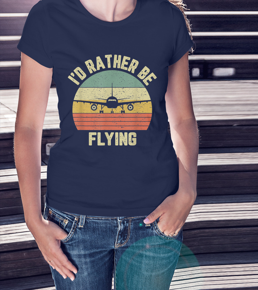 I'd Rather Be Flying Airplane Vintage Sunset Pilot Humor T-Shirt