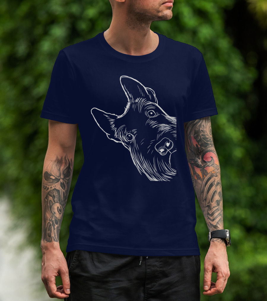 The Funny Scottish Terrier Scottie Dog Peeking T-shirt is designed for everyday wear and a consistent fit. Fabric is pre-shrunk ring-spun cotton with durable stitching. See the size chart below for exact measurements.